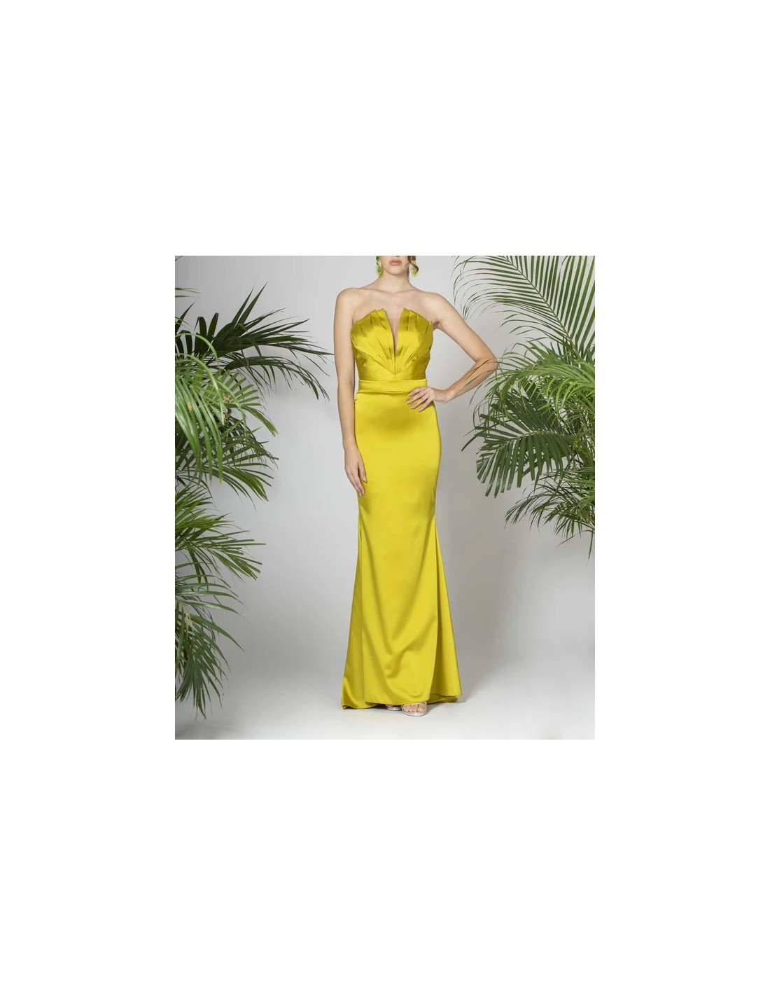 Abito lungo Loren Luxury, cedro, senza spalline, scollo a cuore e chiusura con zip