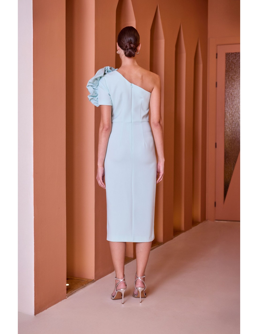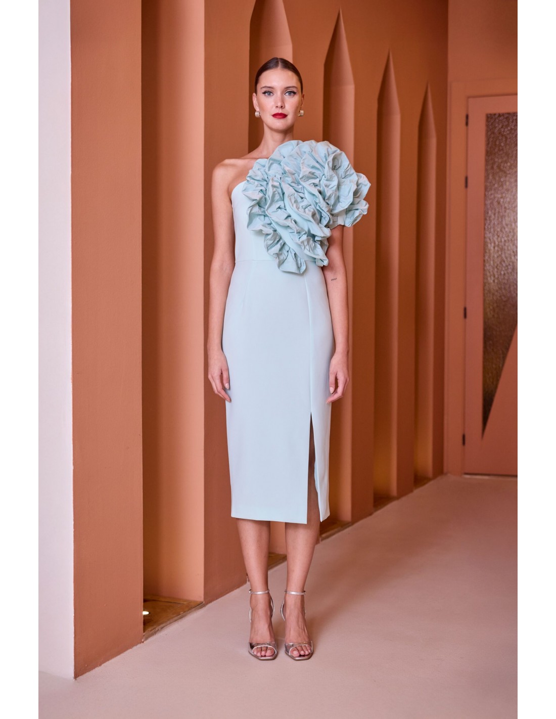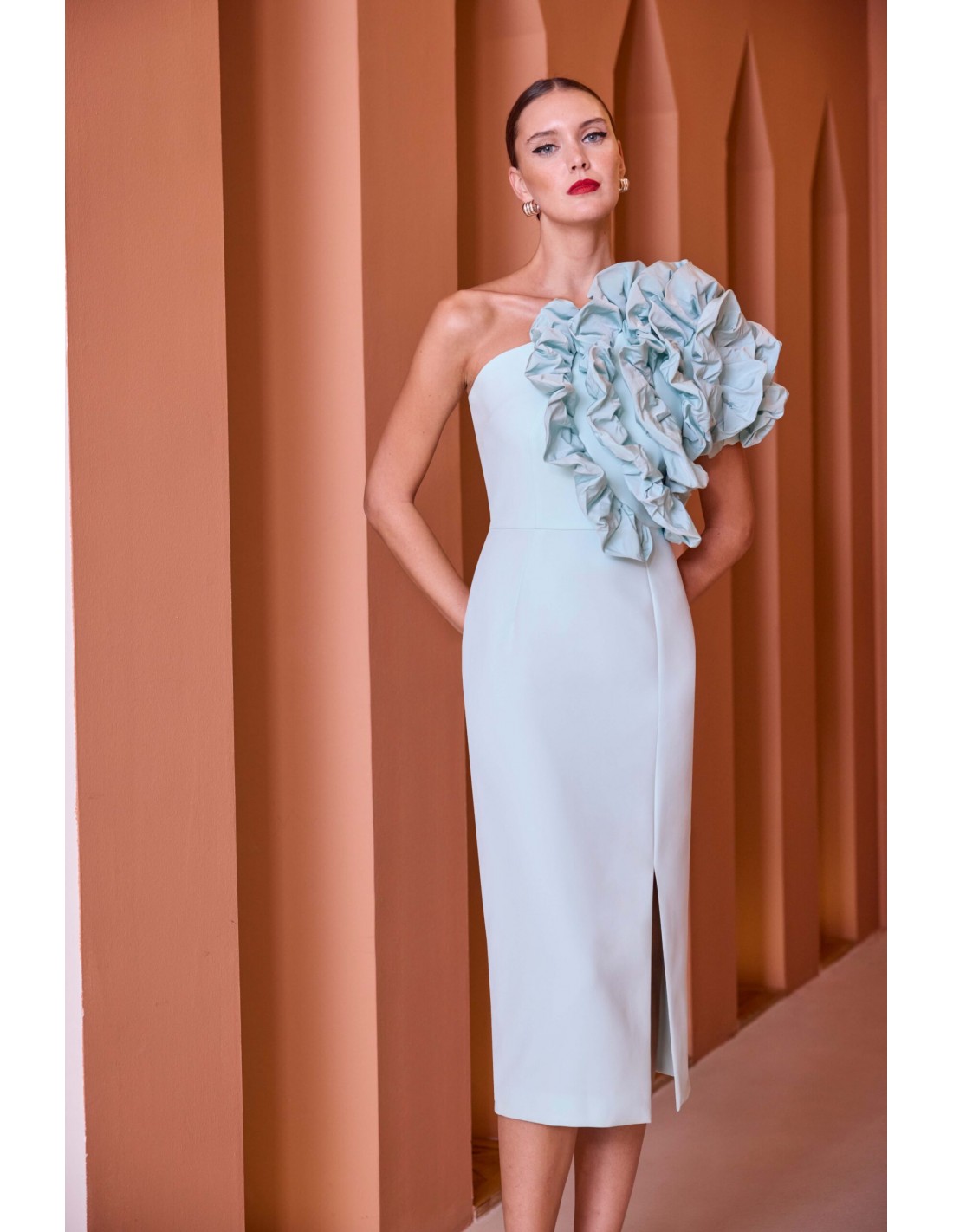 L'Abito Ruiz verde acqua è pensato per completare outfit di tendenza. Realizzato in poliestere, presenta monospalla manica corta rouches in applicazione sul davanti spacco sul fondo e chiusura con zip sul retro. Un capo versatile che si adatta a diverse occasioni. Perfetto per distinguersi con eleganza.