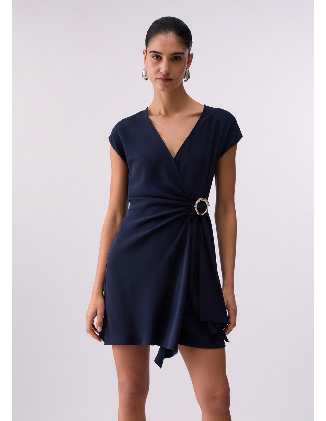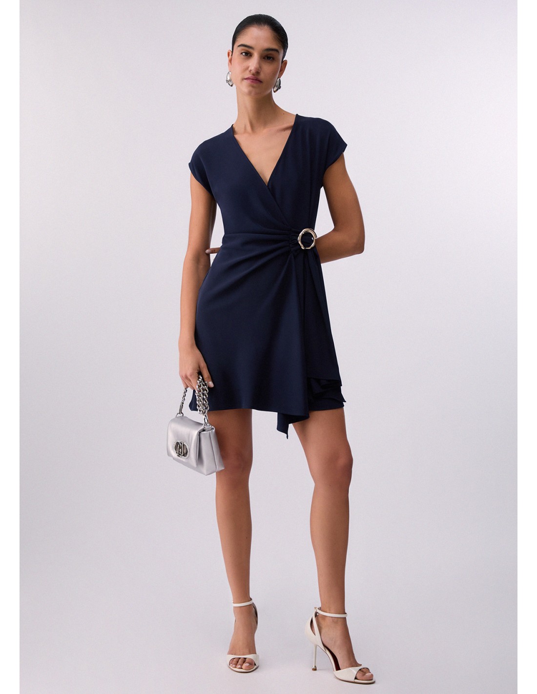 L'Abito Liu-jo blu scuro è ideale per completare outfit moderni. Realizzato in poliestere, presenta maniche corte scollo a V ad incrocio inserto gioiello in applicazione elastico in vita e chiusura con bottone sul retro. Perfetto per look casual o più raffinati. Perfetto per distinguersi con eleganza.