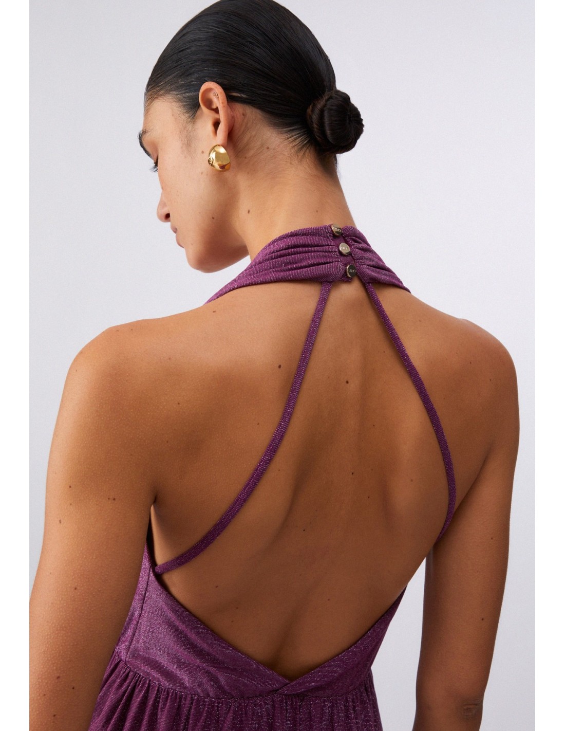 L'Abito Liu-jo viola unisce stile contemporaneo e comfort. Realizzato in jersey, presenta viscosa smanicato scollo a V spacco sul fondo scollatura sulla schiena cintura inclusa elastico in vita e chiusura con bottoni sul retro. Pensato per offrire comfort e qualità. Scoprilo ora e rinnova i tuoi outfit.