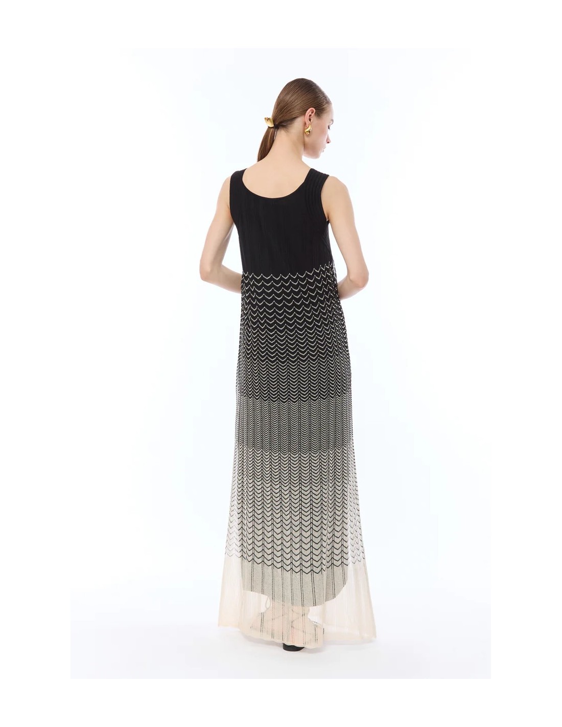 L'Abito Nenette nero-beige valorizza ogni outfit con un tocco moderno. Realizzato in maglina, presenta misto viscosa smanicato scollo rotondo e inserti traforati. Ideale da indossare ogni giorno senza rinunciare allo stile. Perfetto per distinguersi con eleganza.