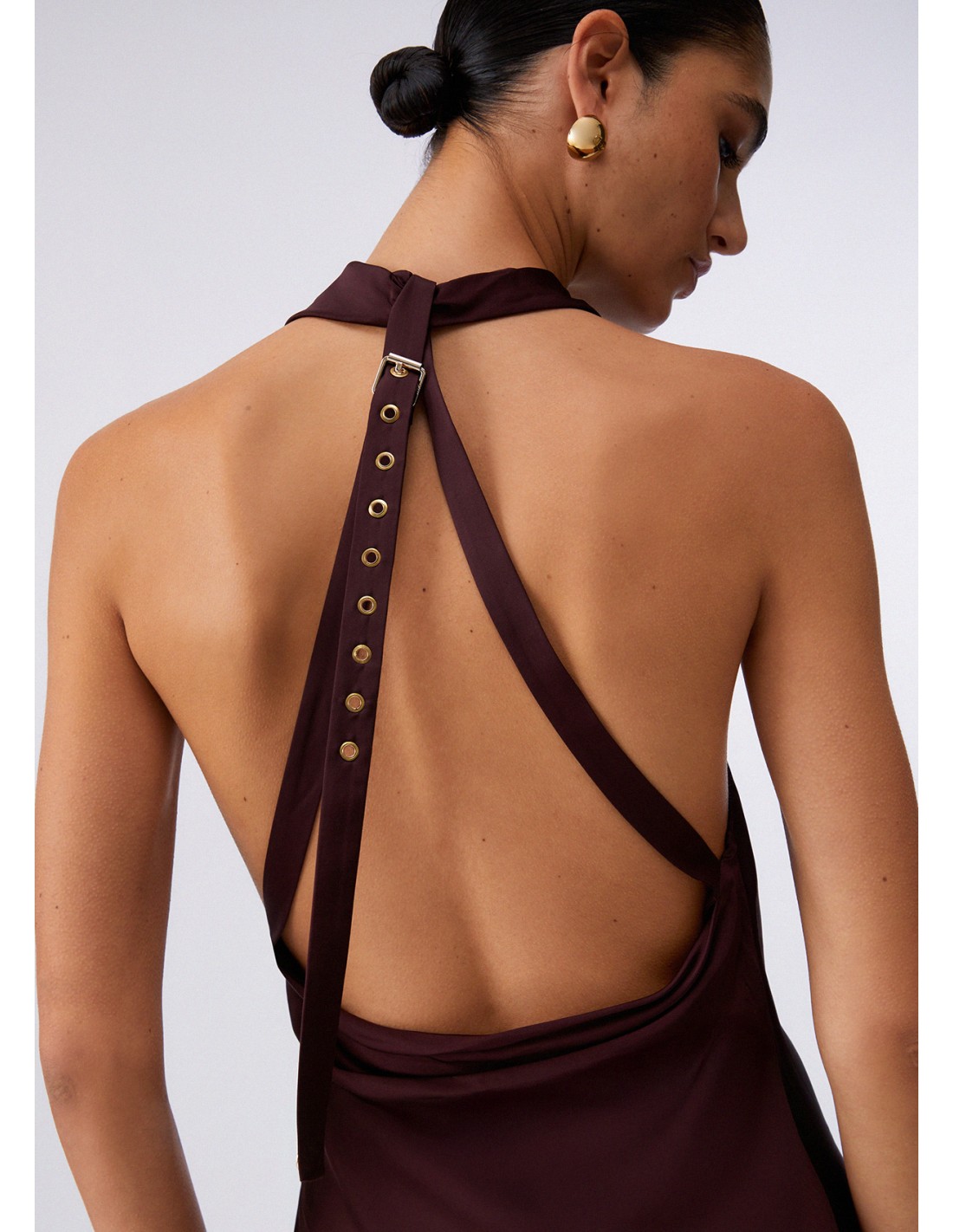 L'Abito Liu-jo marrone è perfetto per completare il guardaroba con stile. Realizzato in raso, presenta viscosa smanicato scollo ad anello scollatura e fibbia in applicazione sul retro. Pensato per offrire comfort e qualità nei dettagli. Aggiungilo ora al tuo guardaroba.