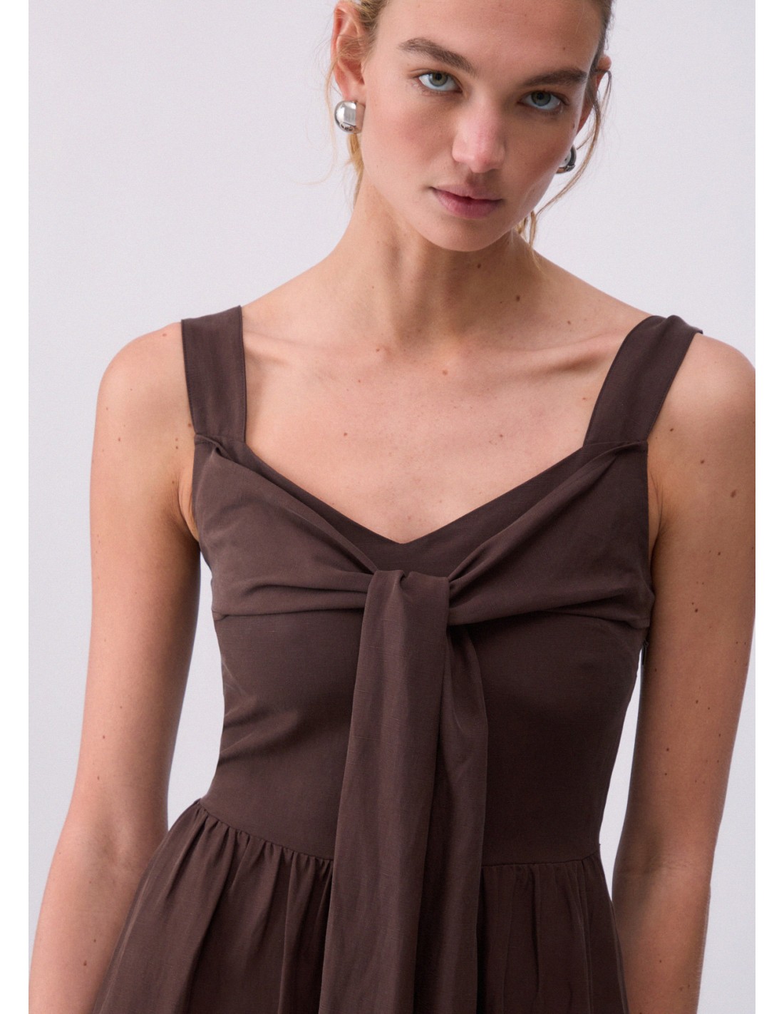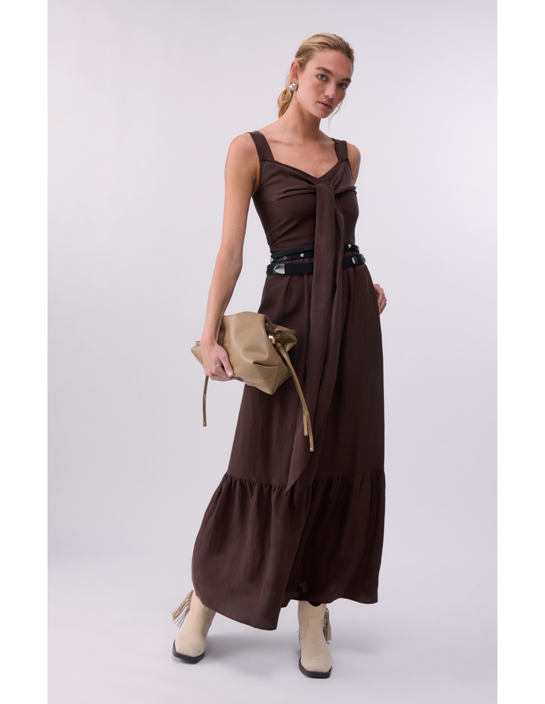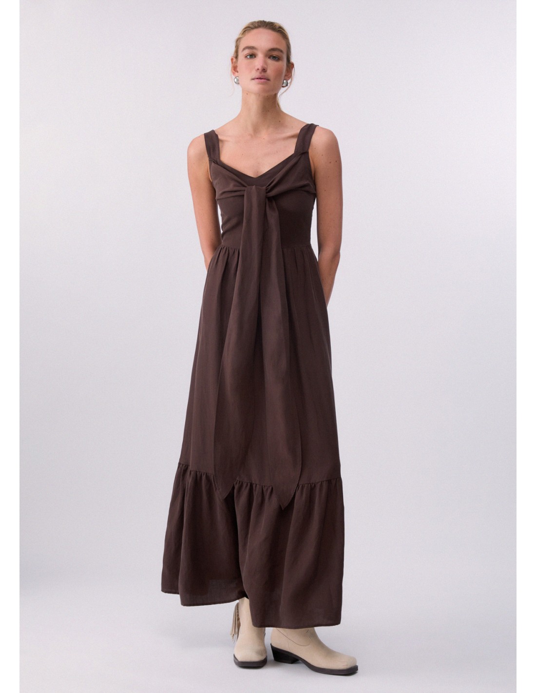 L'Abito Liu-jo marrone è la scelta ideale per chi cerca un capo di tendenza. Realizzato in misto lino, presenta smanicato scollo a V nodo sul davanti tasche laterali balza in applicazione sul fondo elastico sul retro e chiusura con zip laterale. Pensato per offrire comfort e qualità nei dettagli. Aggiungilo ora al tuo guardaroba.