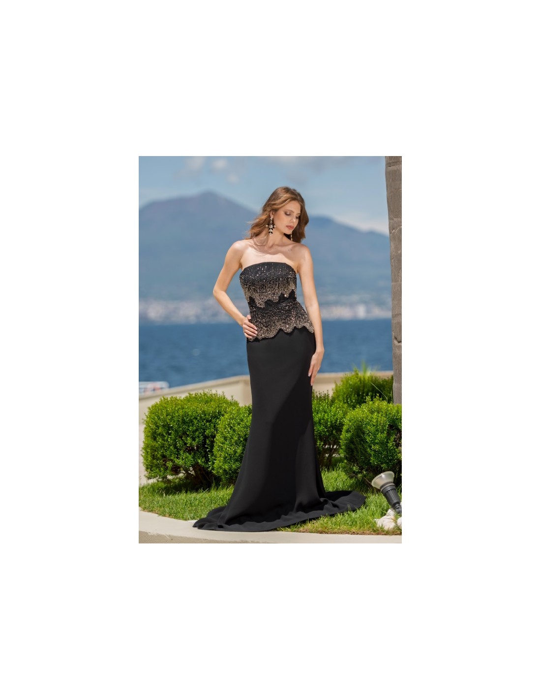 Abito lungo Le Preziose, nero, composizione poliestere, strass in applicazione nel corpetto e chiusura con zip sul retro