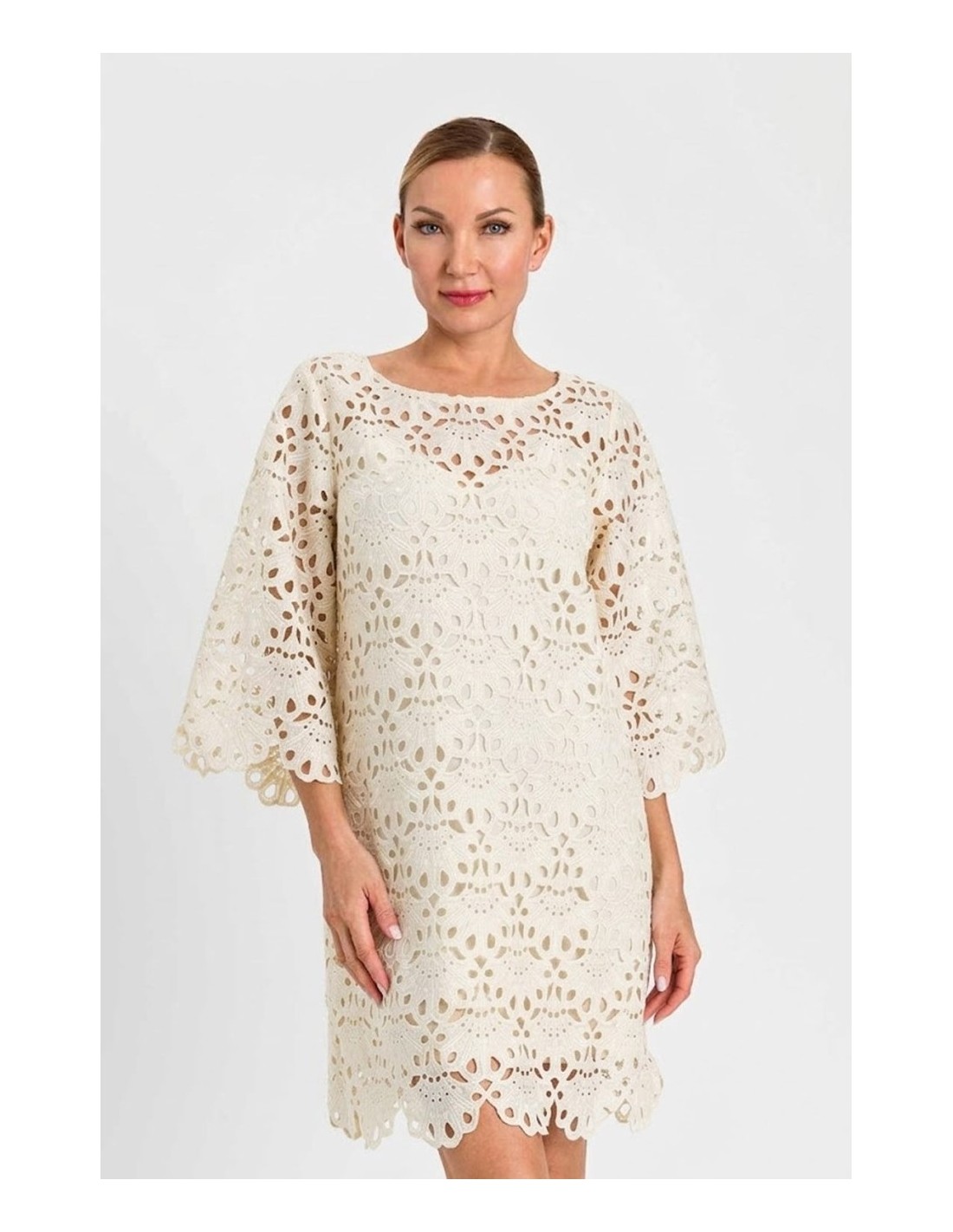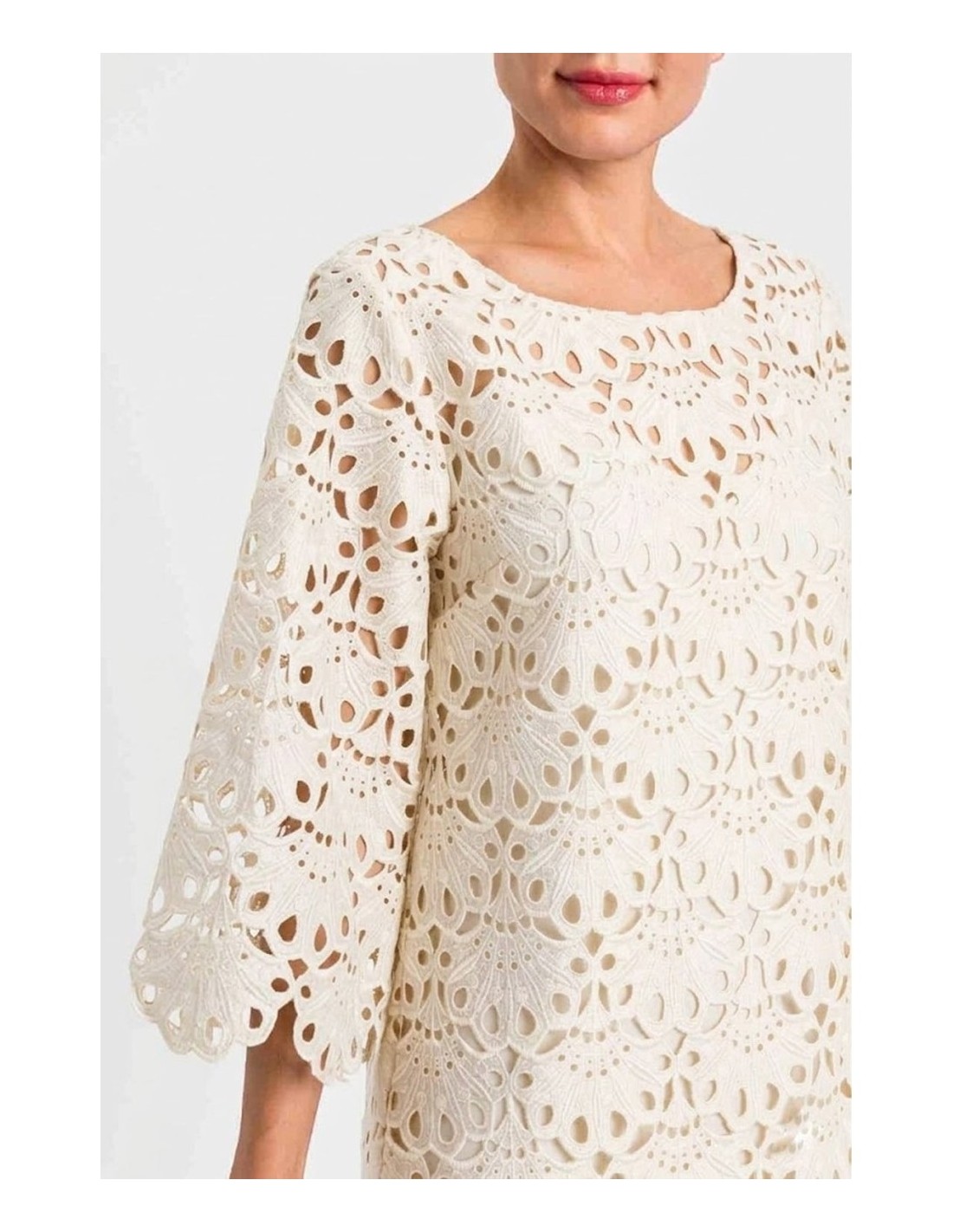 L'Abito Twinset bianco è la scelta ideale per chi cerca un capo di tendenza. Realizzato in poliestere, presenta inserti traforati maniche tre quarti e scollo rotondo. Pensato per offrire comfort e qualità nei dettagli. Scoprilo subito e rinnova il tuo look.