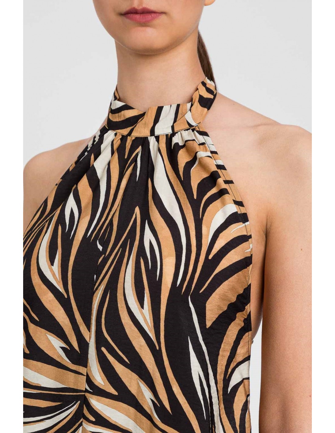 L'Abito Twinset cammello-avorio-nero unisce eleganza e comfort per un look contemporaneo. Realizzato in misto viscosa, presenta smanicato scollo all'americana scollatura elastico e chiusura con lacci sul retro. Pensato per offrire comfort e qualità nei dettagli. Scoprilo subito e rinnova il tuo look.