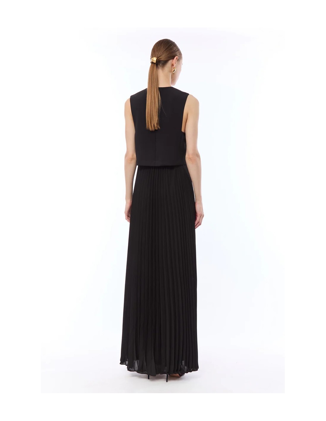 L'Abito Nenette nero è perfetto per completare il guardaroba con stile. Realizzato in poliestere, presenta smanicato scollo a V dettaglio gioiello in applicazione sul davanti gonna plissettata e chiusura con zip sul retro. Ideale da indossare ogni giorno senza rinunciare allo stile. Perfetto per distinguersi con eleganza.