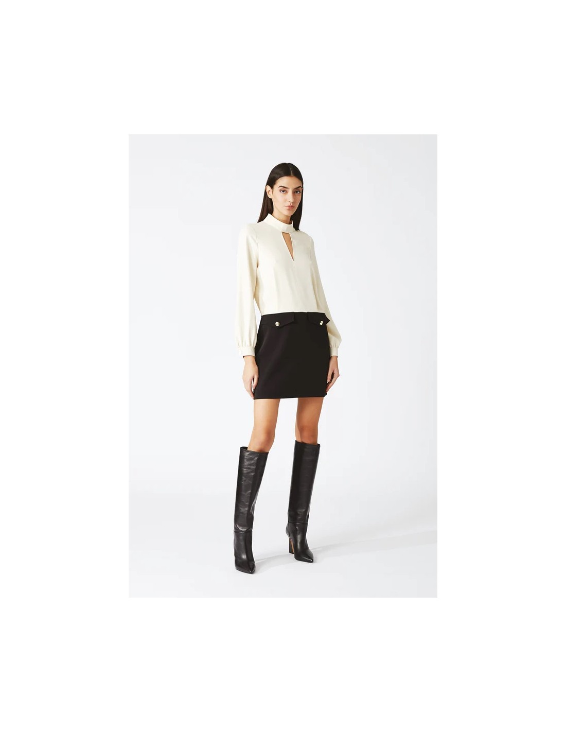 Sfoggia Abito donna NENETTE Abito corto, avorio-nero, composizione poliestere, maniche lunghe, scollo a V, tasche, bottoni in applicazione sul davanti e chiusura con zip laterale e lascia un'impronta di stile ovunque tu vada. La qualità e il design ti aspettano, acquista ora!