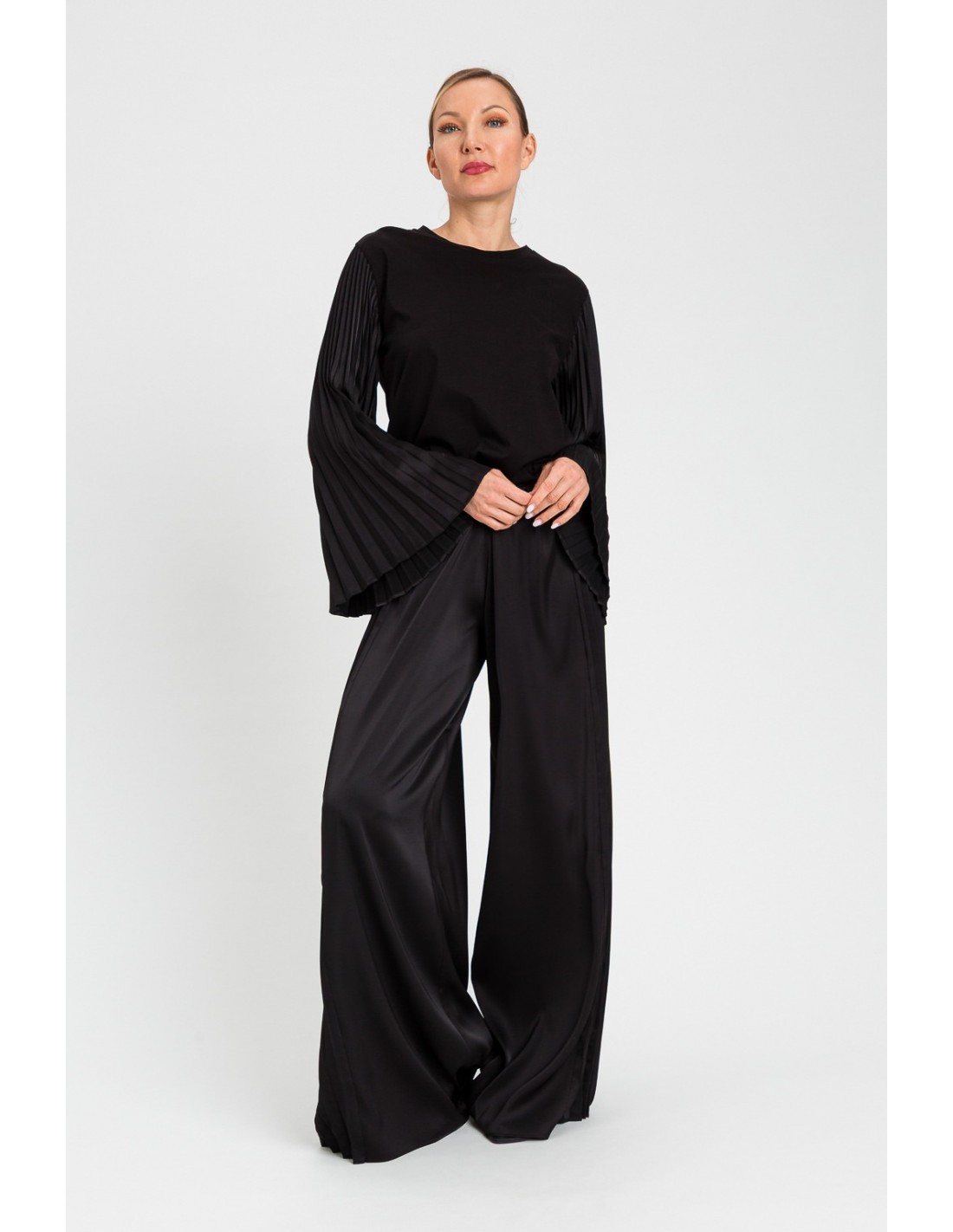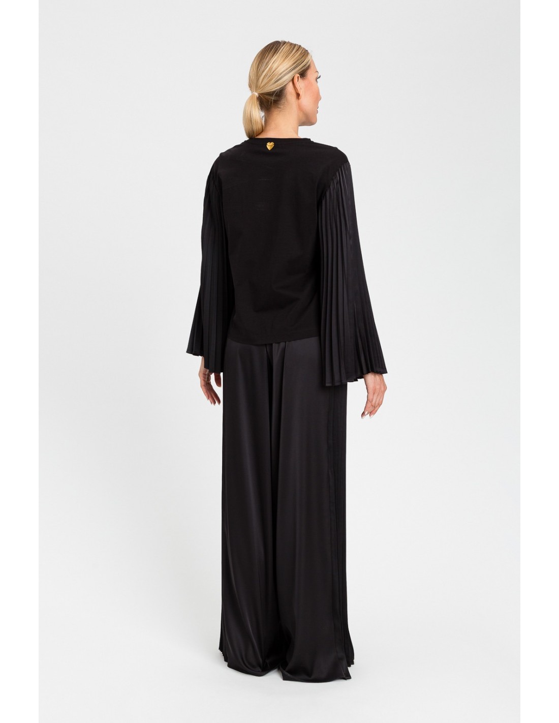 Il Pantalone Twinset nero è la scelta ideale per chi cerca un capo di tendenza. Realizzato in jersey, presenta gamba larga inserti plissettati sui lati ed elastico in vita. Perfetto per outfit casual chic o più raffinati. Scoprilo subito e rinnova il tuo look.