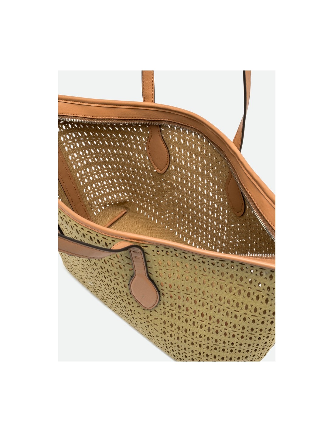 La Borsa Chiarini verde-cammello rappresenta una scelta raffinata per il guardaroba moderno. Realizzato in canvas, presenta inserti in pelle traforata logo laterale e chiusura con zip. Misure: 35 x 28 x 14 cm. Perfetto per creare look casual chic o più sofisticati. Scoprilo ora e rendilo protagonista dei tuoi outfit.
