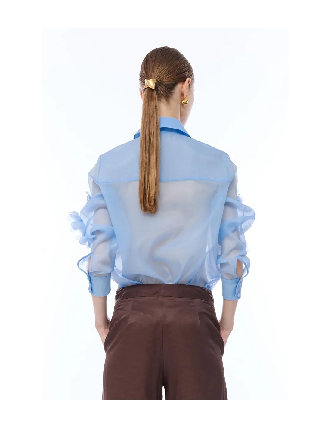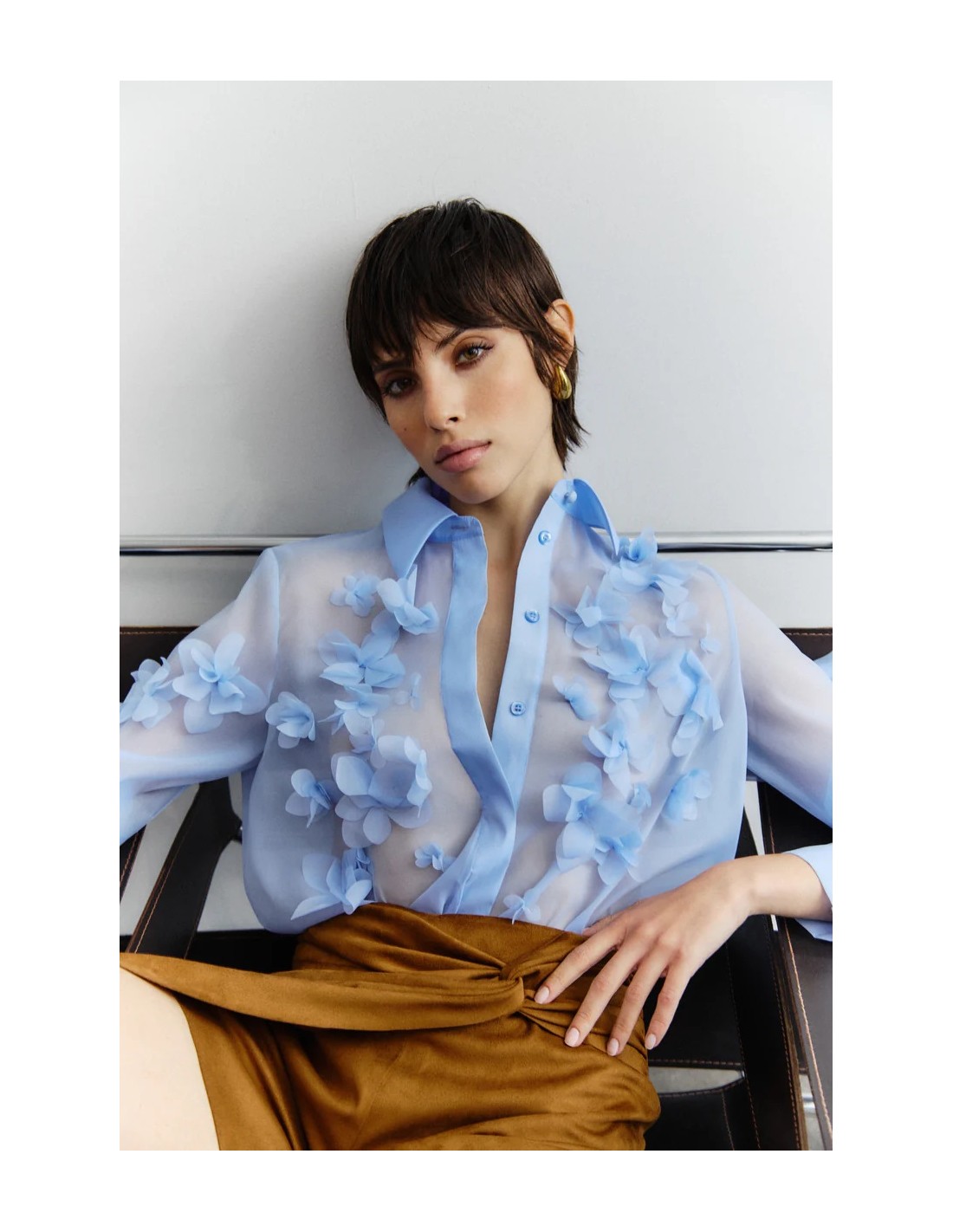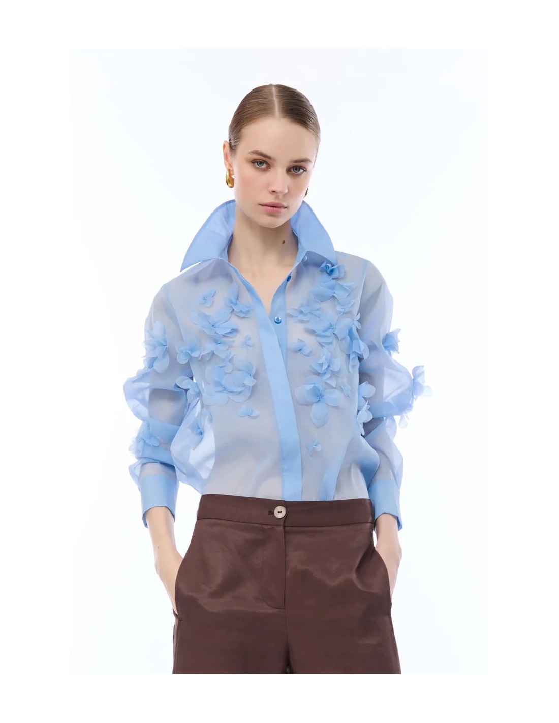 La Camicia Nenette celeste valorizza ogni outfit con un tocco moderno. Realizzato in organza, presenta maniche lunghe fiori in rilievo in applicazione e chiusura con bottoni sul davanti. Un capo versatile perfetto per outfit casual chic o più raffinati. Scoprilo subito e rinnova il tuo look.