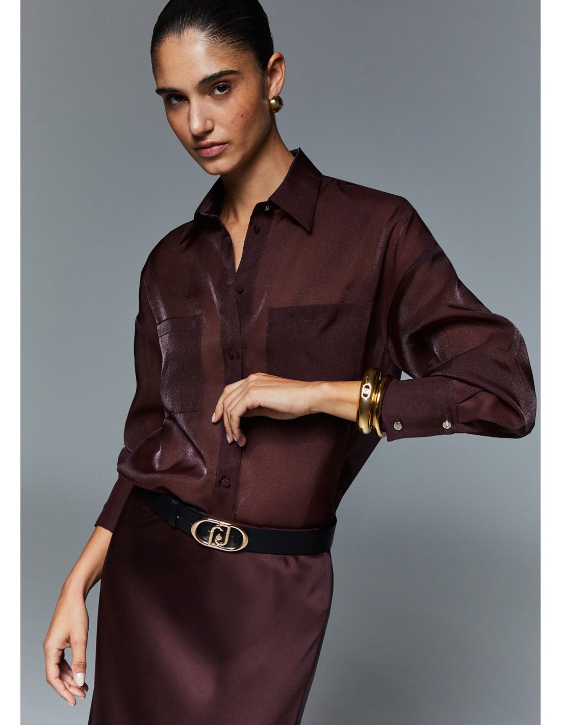 La Camicia Liu-jo marrone valorizza ogni outfit con un tocco moderno. Realizzato in organza, presenta maniche lunghe tasche in applicazione e chiusura con bottoni sul davanti. Perfetto per outfit casual chic o più raffinati. Aggiungilo ora al tuo guardaroba.