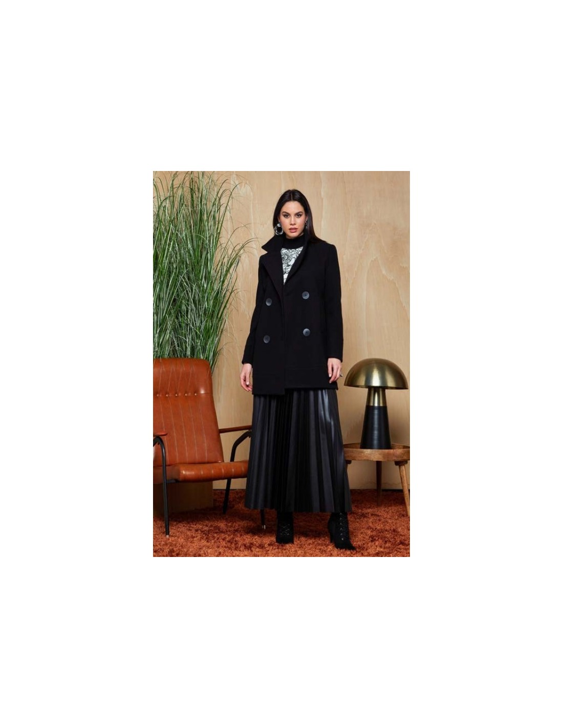 Nero Cappotto Shockingai, disponibile nel colore tasche laterali e chiusura doppiopetto con bottoni sul davanti. Un capo immancabile per un guardaroba di tendenza.