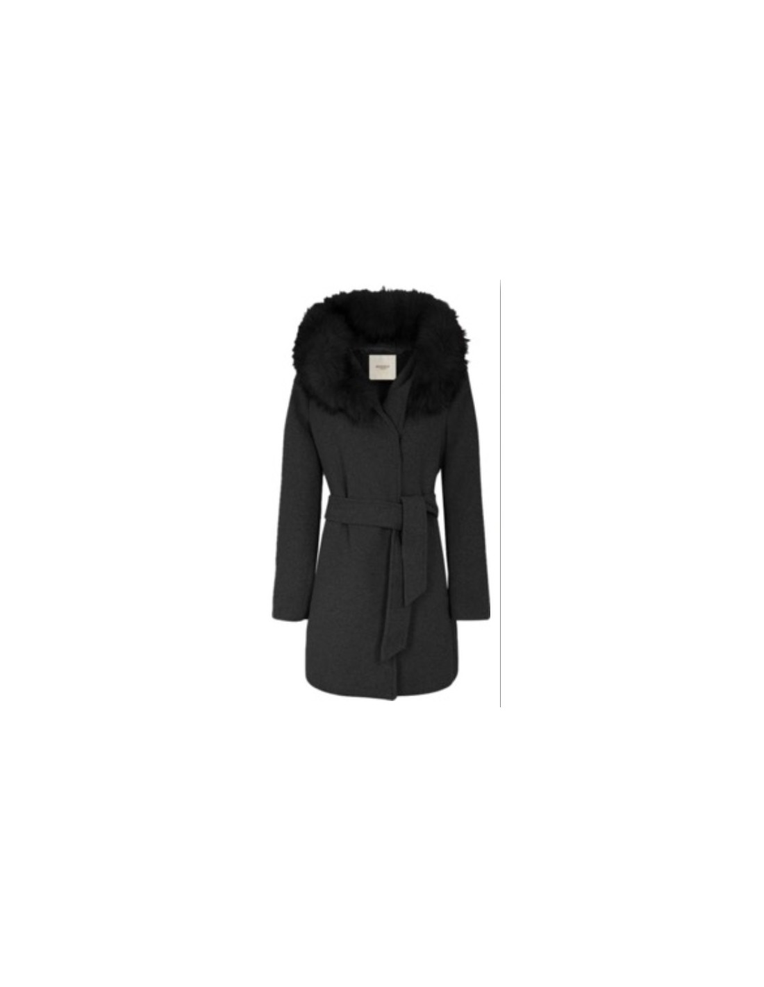 Cappotto Markup, nero, composizione panno, tasche laterali, cappuccio, pelliccia inclusi, rimovibile e chiusura con cintura