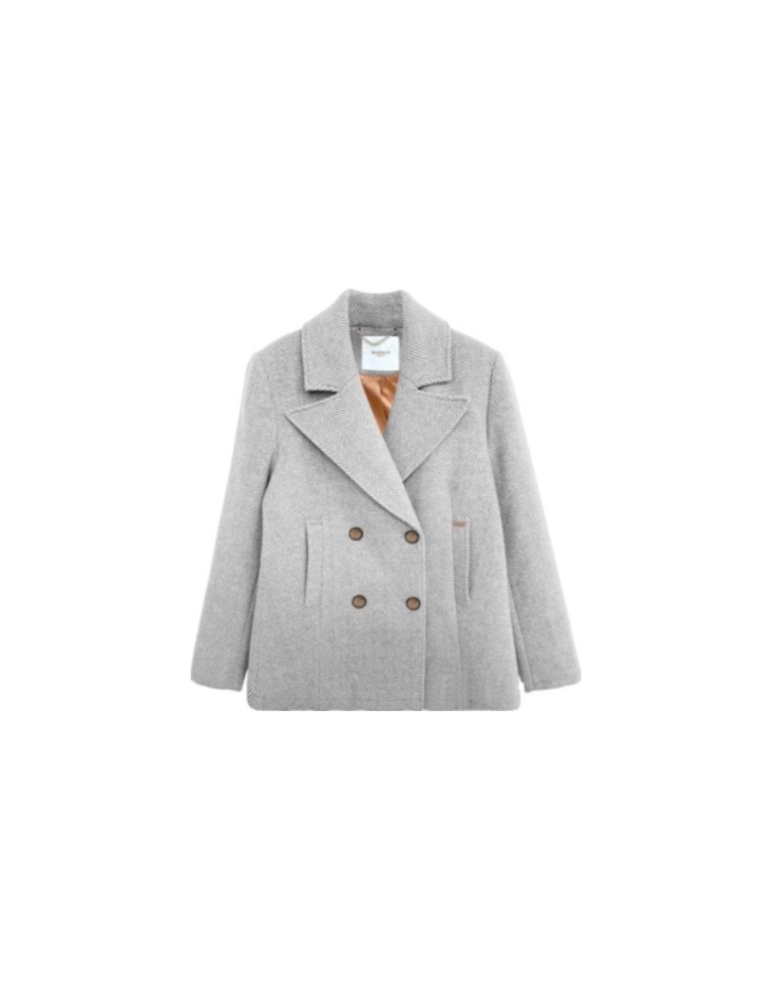 Cappotto Markup grigio, l'espressione ideale di raffinatezza e personalità. Realizzato in poliestere, presenta maniche lunghe tasche laterali collo a revers scollo a V e chiusura doppiopetto con bottoni sul davanti. Un must-have per chi desidera distinguersi con gusto e semplicità. Disponibile ora su Cannarozzo Moda, non lasciartelo sfuggire!