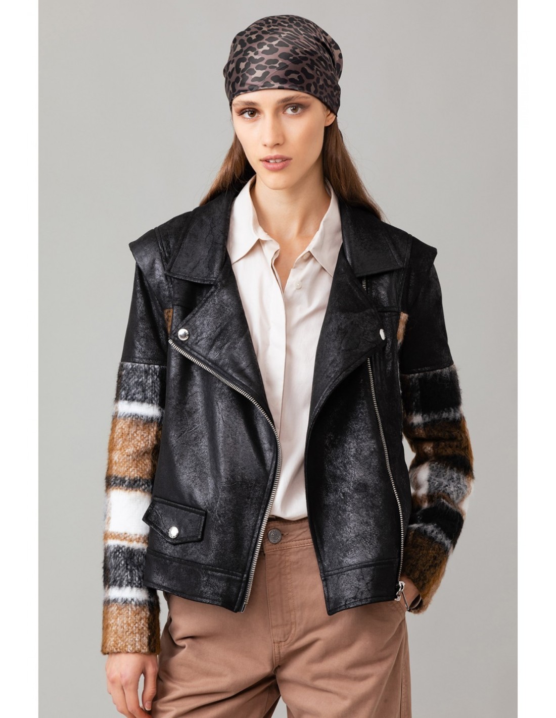Giubbino donna Gaelle in similpelle, tasca sul davanti e chiusura con zip.