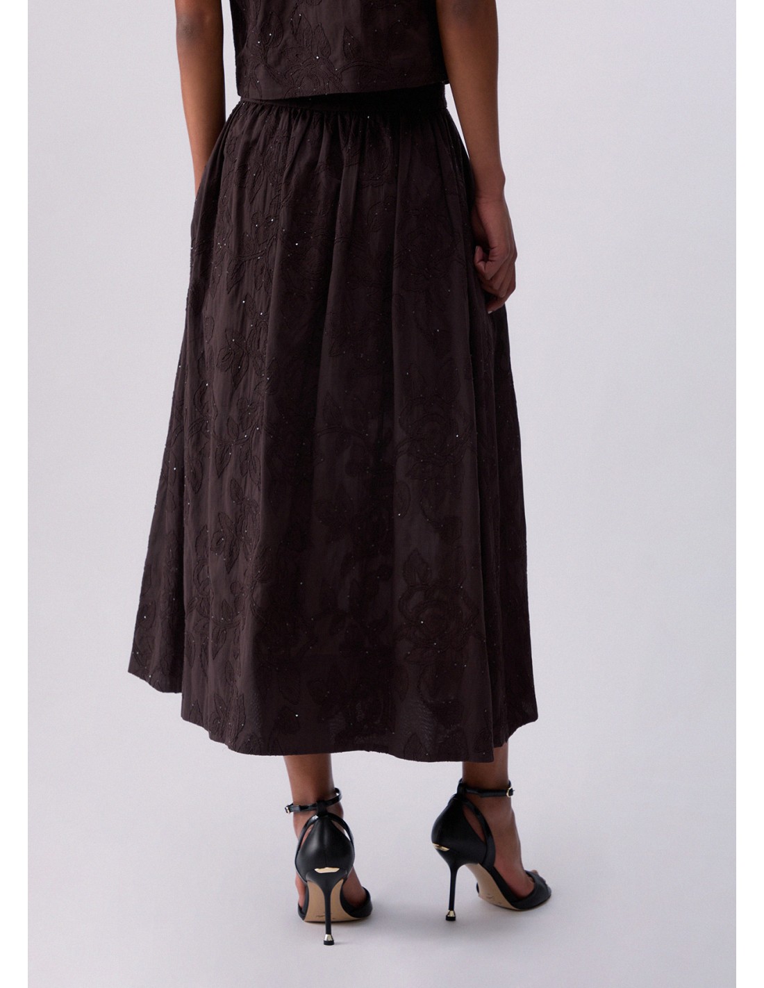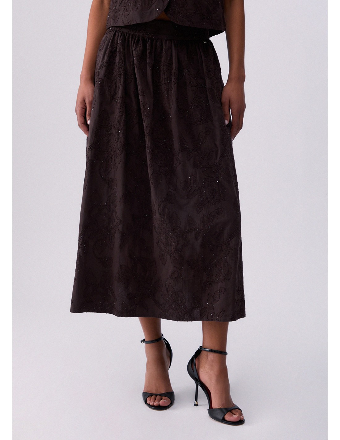 La Gonna Liu-jo marrone valorizza ogni outfit con un tocco moderno. Realizzato in cotone, presenta inserti ricamati paillettes in applicazione tasche e chiusura con zip laterale. Ideale da indossare ogni giorno senza rinunciare allo stile. Perfetto per distinguersi con eleganza.