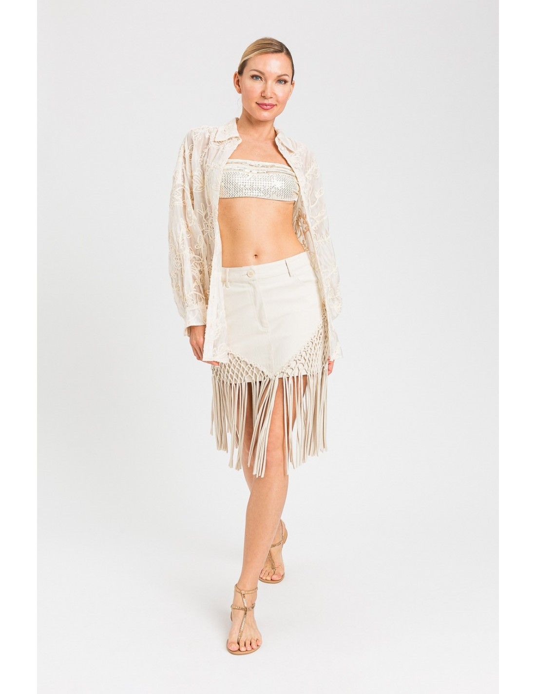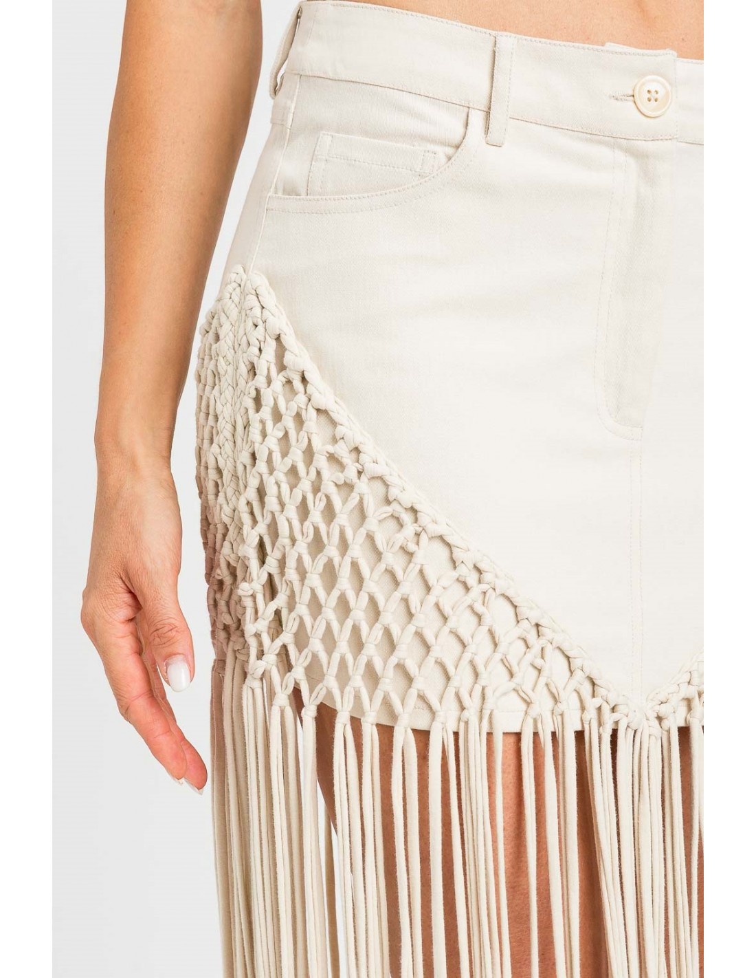 La Giacca Twinset beige è la scelta ideale per chi cerca un capo di tendenza. Realizzato in cotone, presenta jersey maniche lunghe frange in applicazione sul davanti e chiusura con bottoni. Un capo versatile che si adatta a diverse occasioni. Perfetto per distinguersi con eleganza.