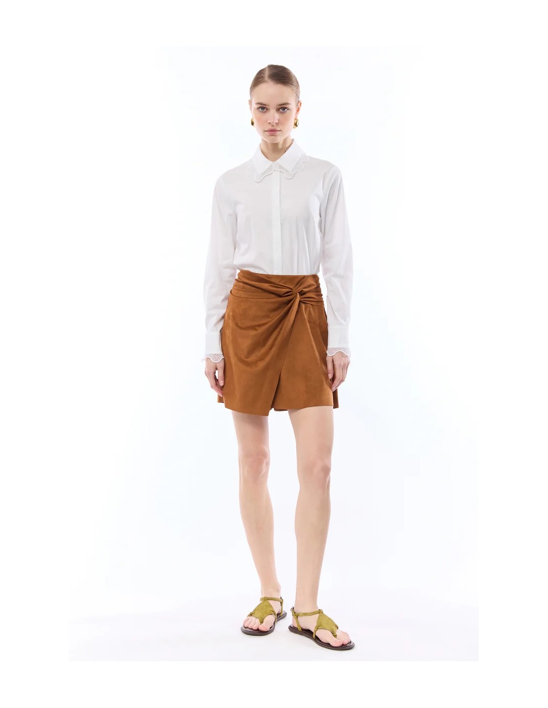 Pantaloncino Nenette corda è la scelta ideale per chi cerca un capo di tendenza. Realizzato in camoscio, presenta nodo sul davanti ad incrocio vita alta e chiusura con zip sul retro. Ideale da indossare ogni giorno senza rinunciare allo stile. Un must-have per chi ama la moda.