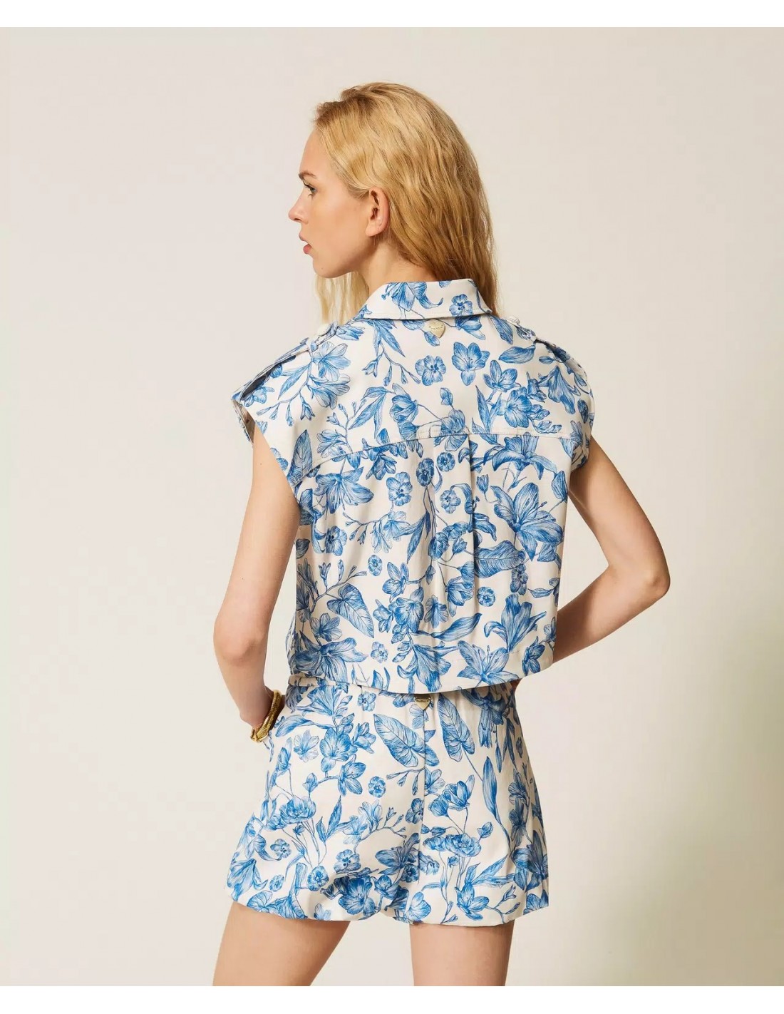 Pantaloncini Twinset bianco-celeste valorizza ogni outfit con un tocco moderno. Realizzato in misto cotone, presenta tasche laterali elastico in vita e bottone in applicazione sul davanti. Un capo versatile che si adatta a diverse occasioni. Aggiungilo ora al tuo guardaroba.