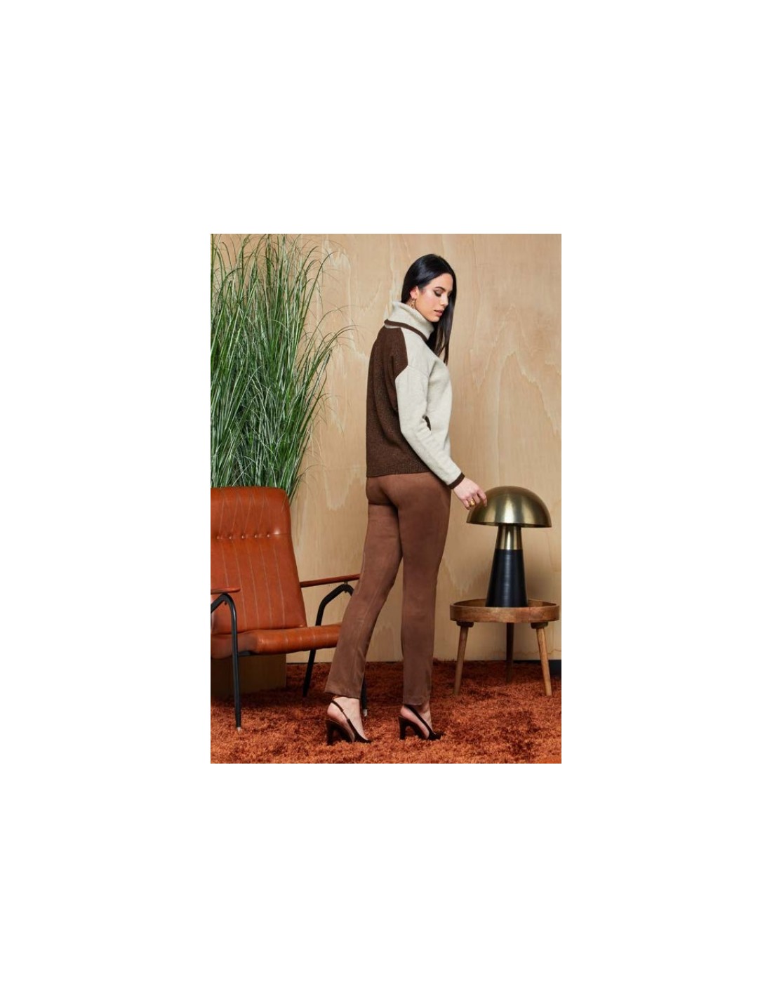 Marrone Pantalone sigaretta Shockingai realizzato in tasche laterali, caratterizzato da una fantasia elastico sul retro e chiusura con zip e bottone sul davanti, disponibile nel colore camoscio. Un capo immancabile per un guardaroba di tendenza.