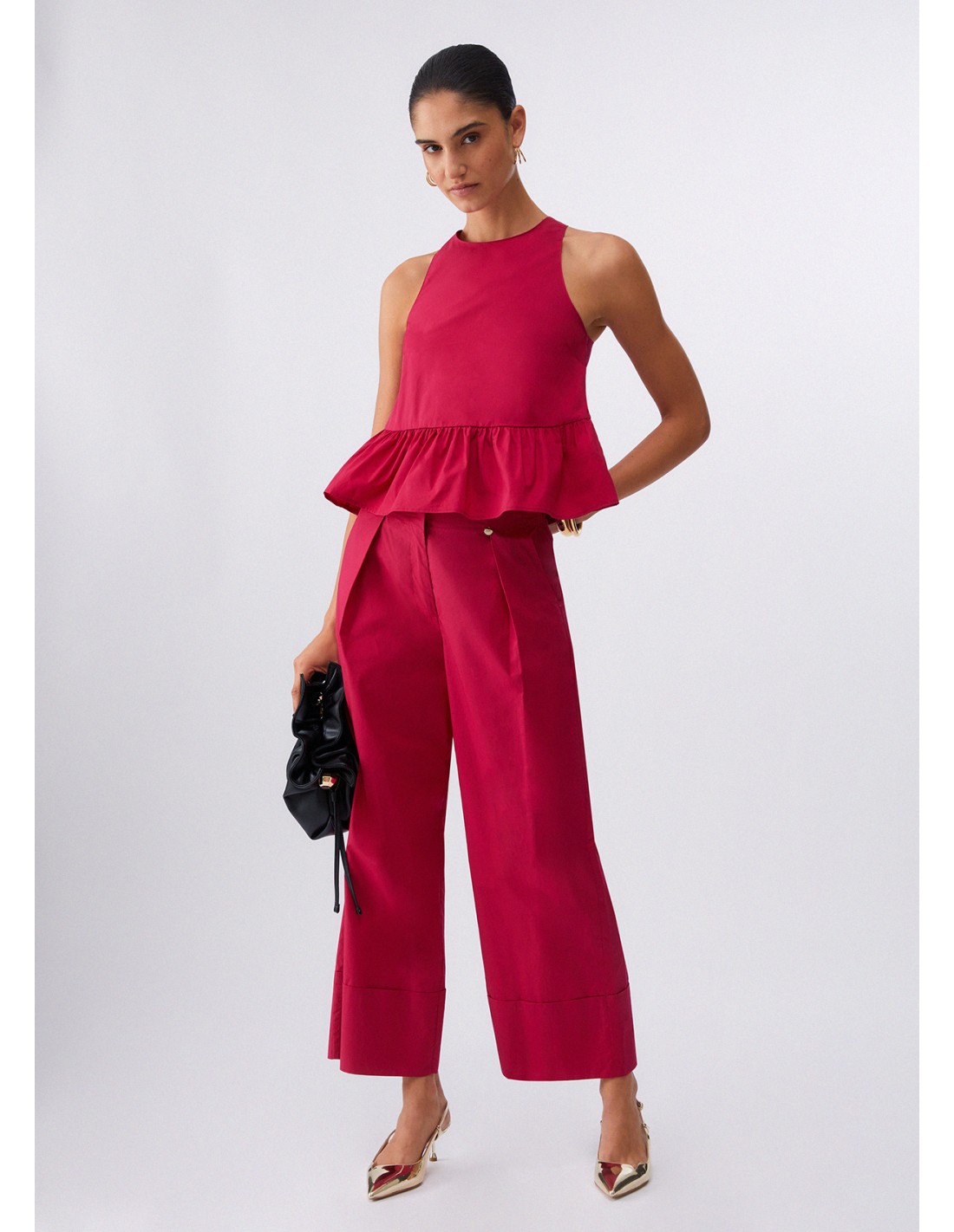 Il Top Liu-jo rosso è ideale per completare outfit moderni. Realizzato in cotone, presenta smanicato girocollo balza sul fondo scollo a V e chiusura con nodo sul retro. Un capo versatile da indossare ogni giorno. Scoprilo ora e rinnova i tuoi outfit.