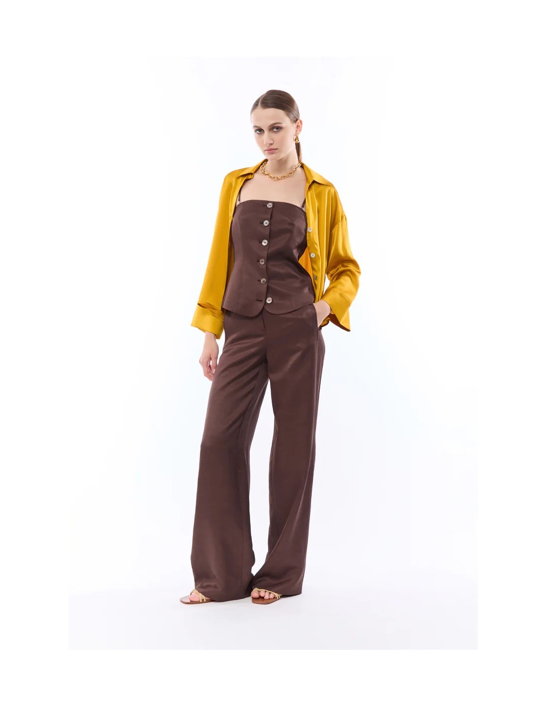 Il Top Nenette marrone unisce eleganza e comfort per un look contemporaneo. Realizzato in cotone, presenta smanicato scollo squadrato spalline regolabili rimovibili elastico sul retro e chiusura con bottoni sul davanti. Pensato per offrire comfort e qualità nei dettagli. Aggiungilo ora al tuo guardaroba.