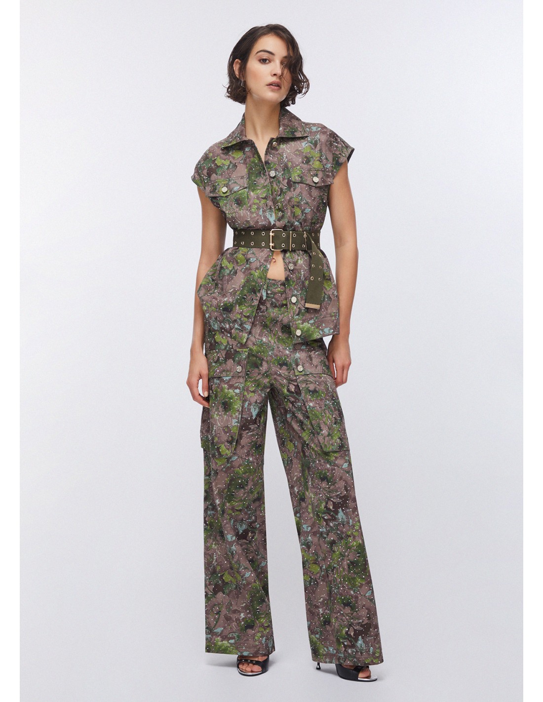 Il Pantalone Liu-jo verde floreale unisce eleganza e comfort per un look contemporaneo. Realizzato in cotone, presenta tasche laterali sul retro gamba larga strass in applicazione e chiusura con zip e bottone sul davanti. Pensato per offrire comfort e qualità nei dettagli. Un must-have per chi ama la moda.