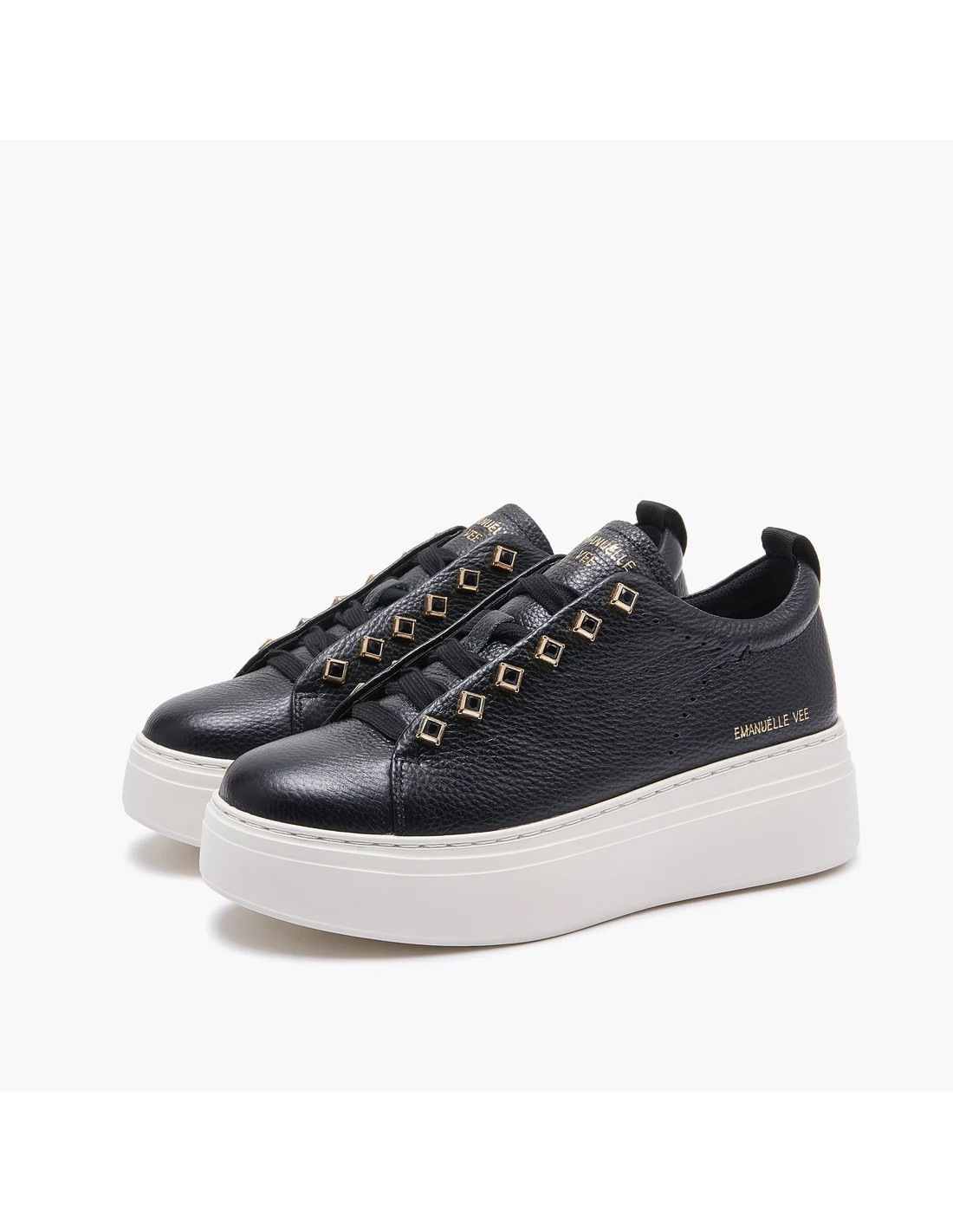 Fatti notare grazie a Le sneakers emanuelle vee in tonalità nero. Realizzate in composizione similpelle, garantiscono un mix perfetto di stile e praticità. Caratteristiche: Suola alta, In gomma, Logo, Pietre in applicazione laterale e chiusura con lacci. Perfette con jeans o abiti per un look urban-chic.