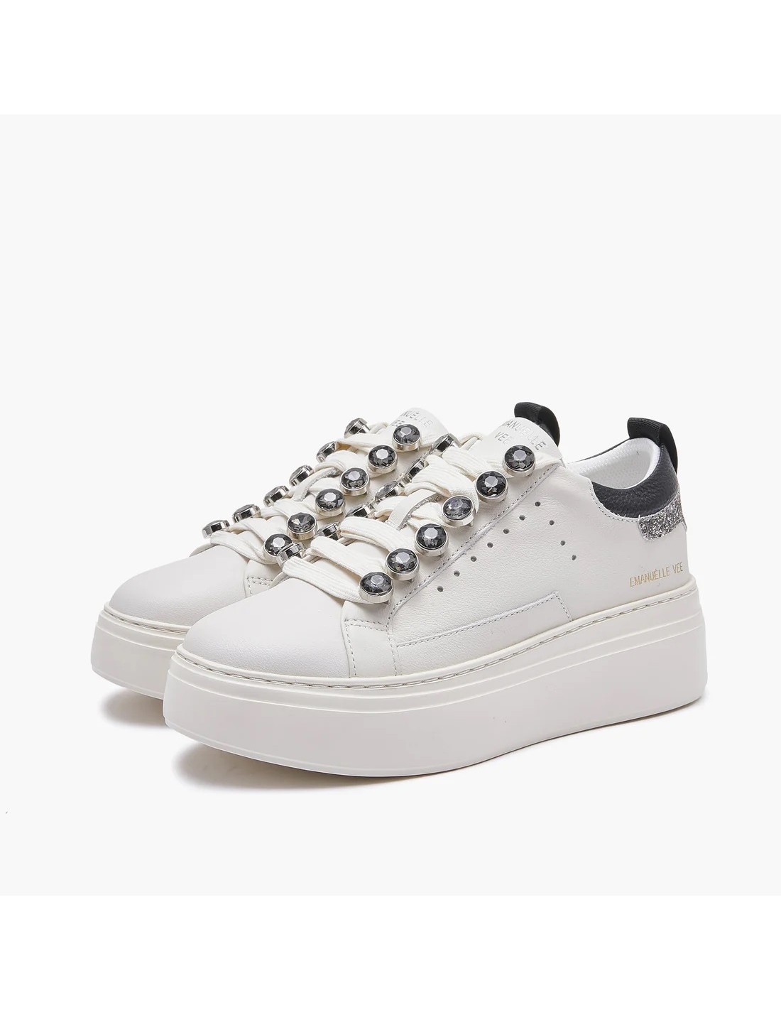 Ogni passo diventa speciale con Le sneakers emanuelle vee in tonalità bianco-nero. Realizzate in composizione similpelle, garantiscono un mix perfetto di stile e praticità. Caratteristiche: Suola alta, In gomma, Logo, Pietre in applicazione laterale, Paillettes sul retro e chiusura con lacci. Ogni dettaglio fa la differenza: non lasciartele scappare.