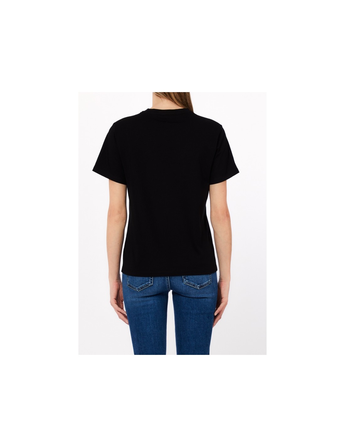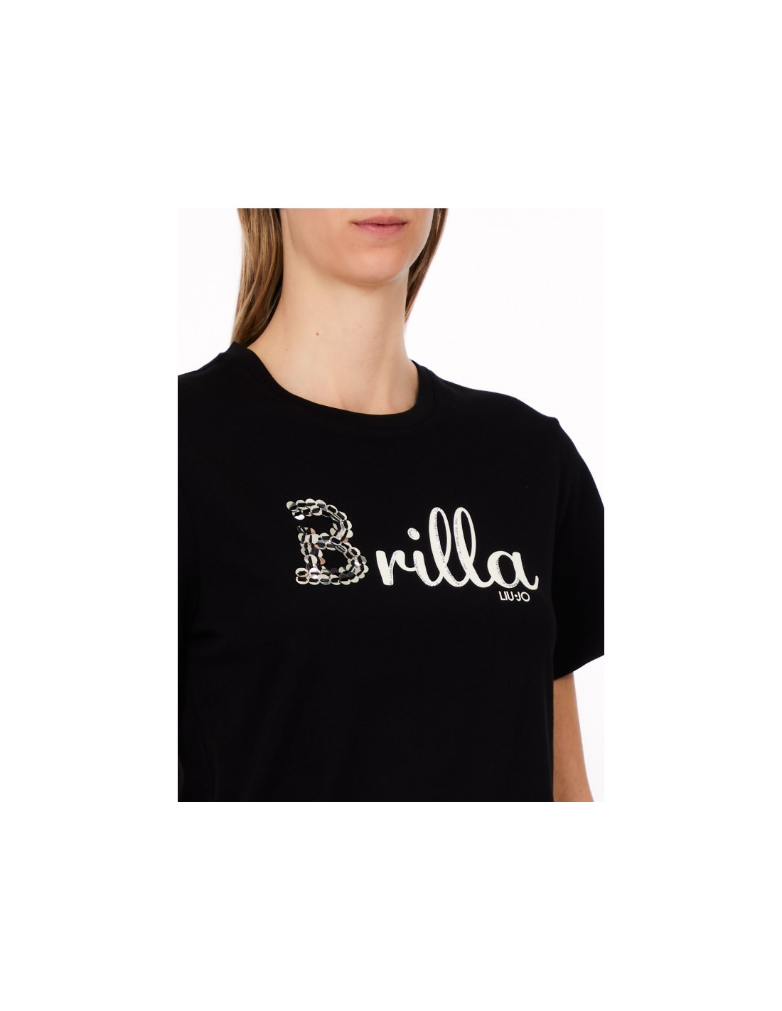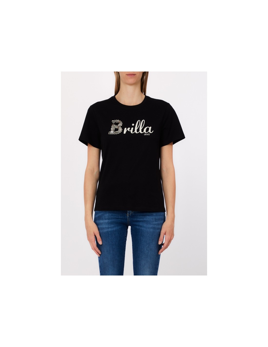 La T-shirt Liu-jo nero unisce stile contemporaneo e comfort. Realizzato in cotone, presenta maniche corte girocollo stampa strass e paillettes in applicazione sul davanti. Pensato per offrire comfort e qualità. Un must-have da aggiungere subito al tuo stile.