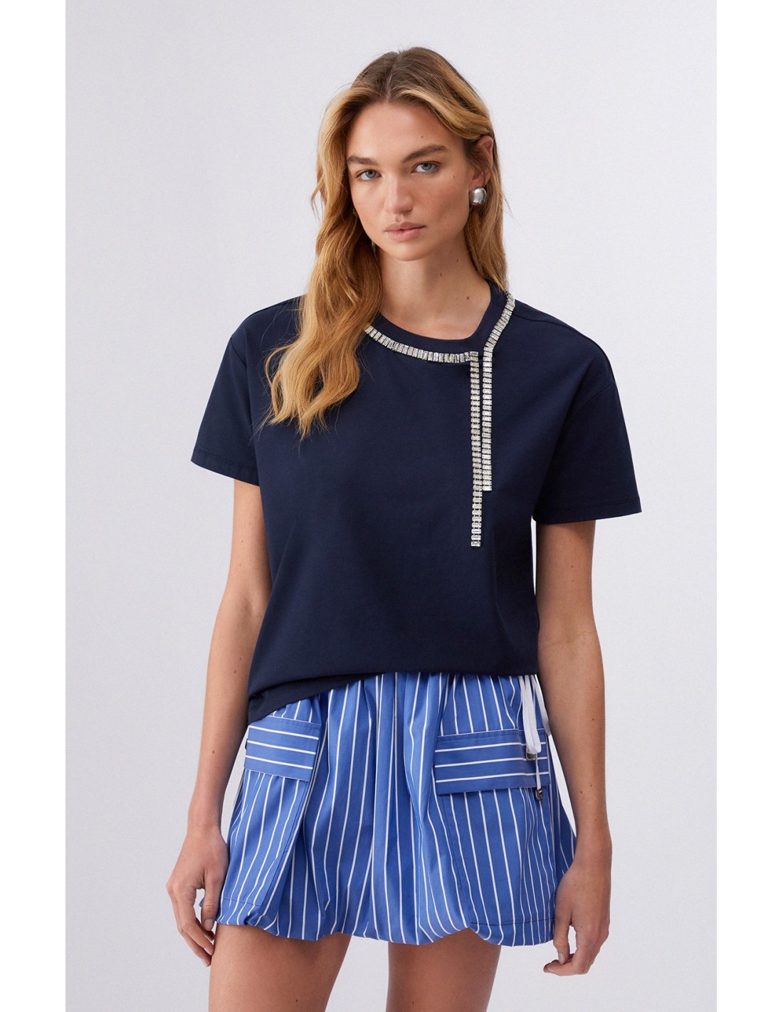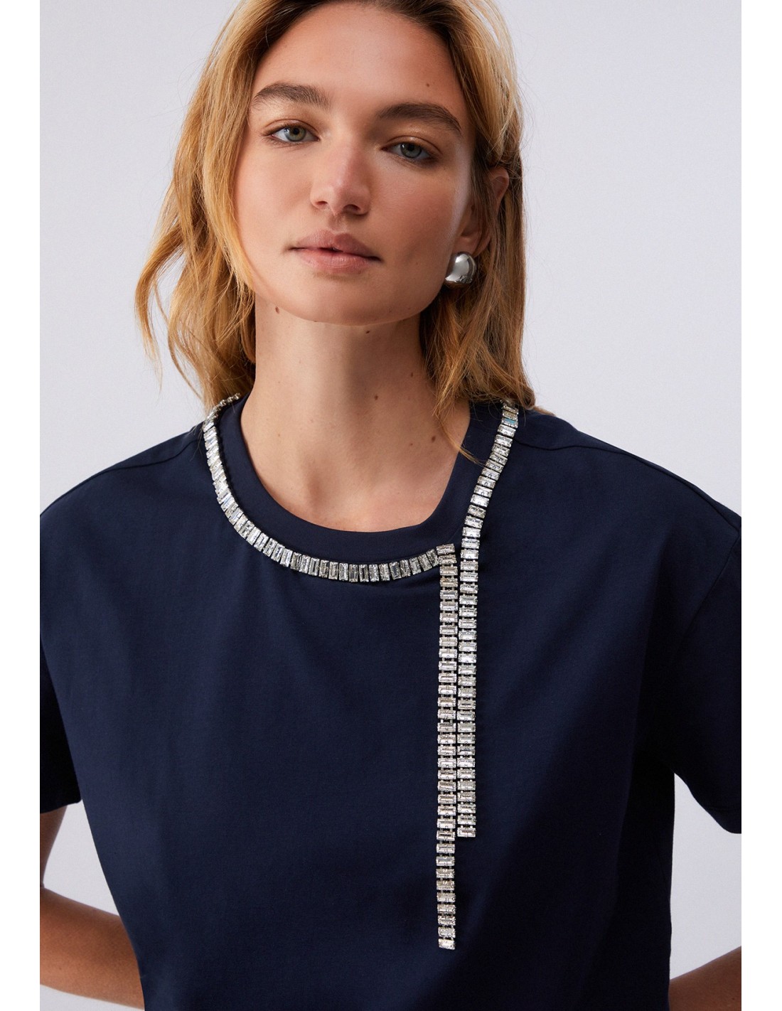 La T-shirt Liu-jo blu scuro è pensato per chi ama distinguersi con eleganza. Realizzato in jersey, presenta cotone maniche corte girocollo e inserto gioiello in applicazione. Perfetto per look casual o più raffinati. Perfetto per distinguersi con eleganza.