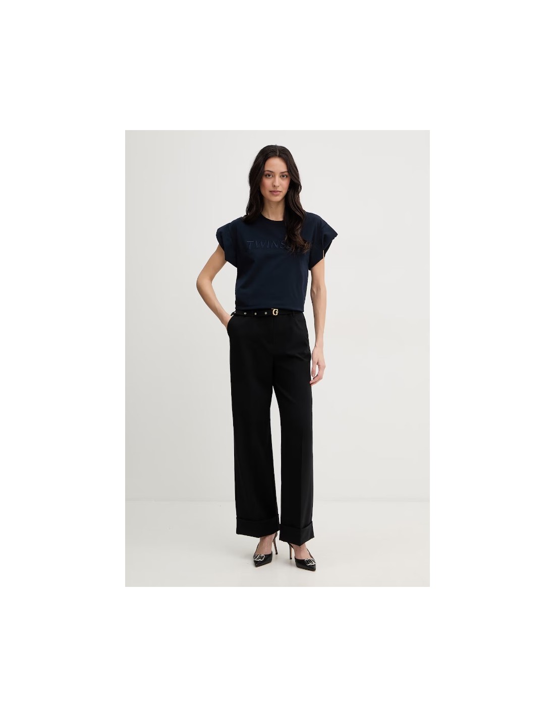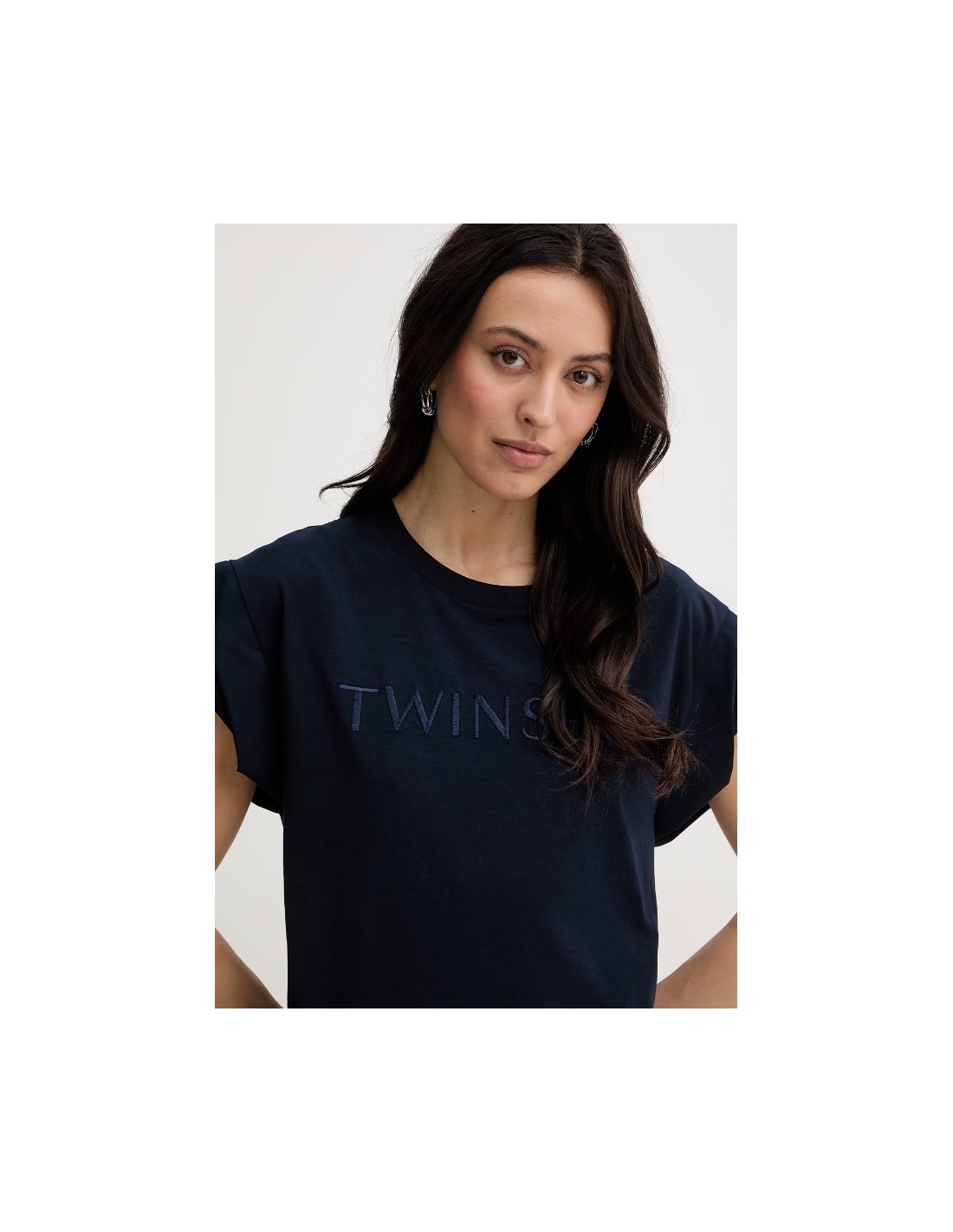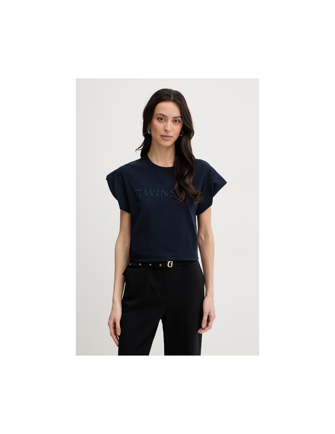 La T-shirt Twinset blu valorizza ogni outfit con un tocco moderno. Realizzato in cotone, presenta girocollo maniche corte e logo ricamato sul davanti. Ideale da indossare ogni giorno senza rinunciare allo stile. Scoprilo subito e rinnova il tuo look.