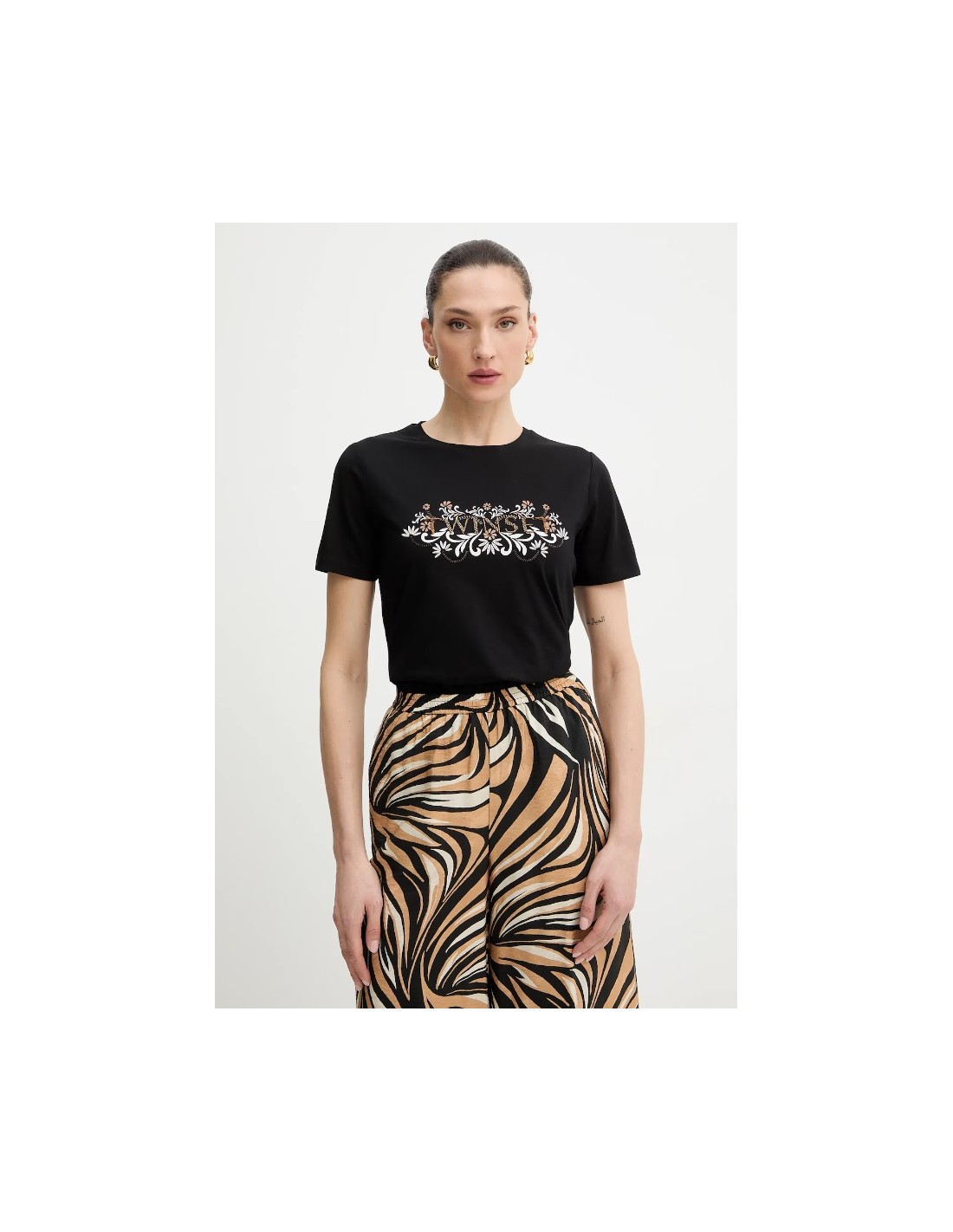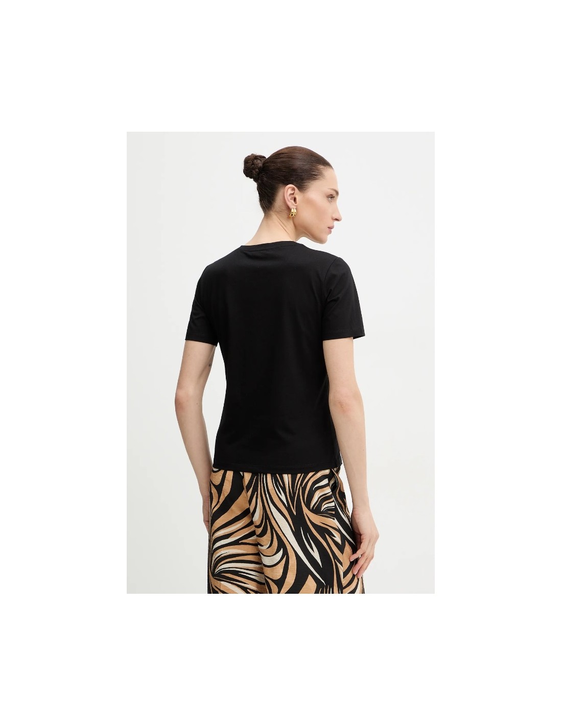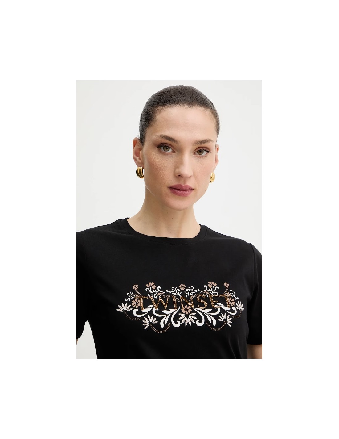La T-shirt Twinset nero è perfetto per completare il guardaroba con stile. Realizzato in cotone, presenta viscosa girocollo maniche corte logo e strass in applicazione sul davanti. Pensato per offrire comfort e qualità nei dettagli. Aggiungilo ora al tuo guardaroba.