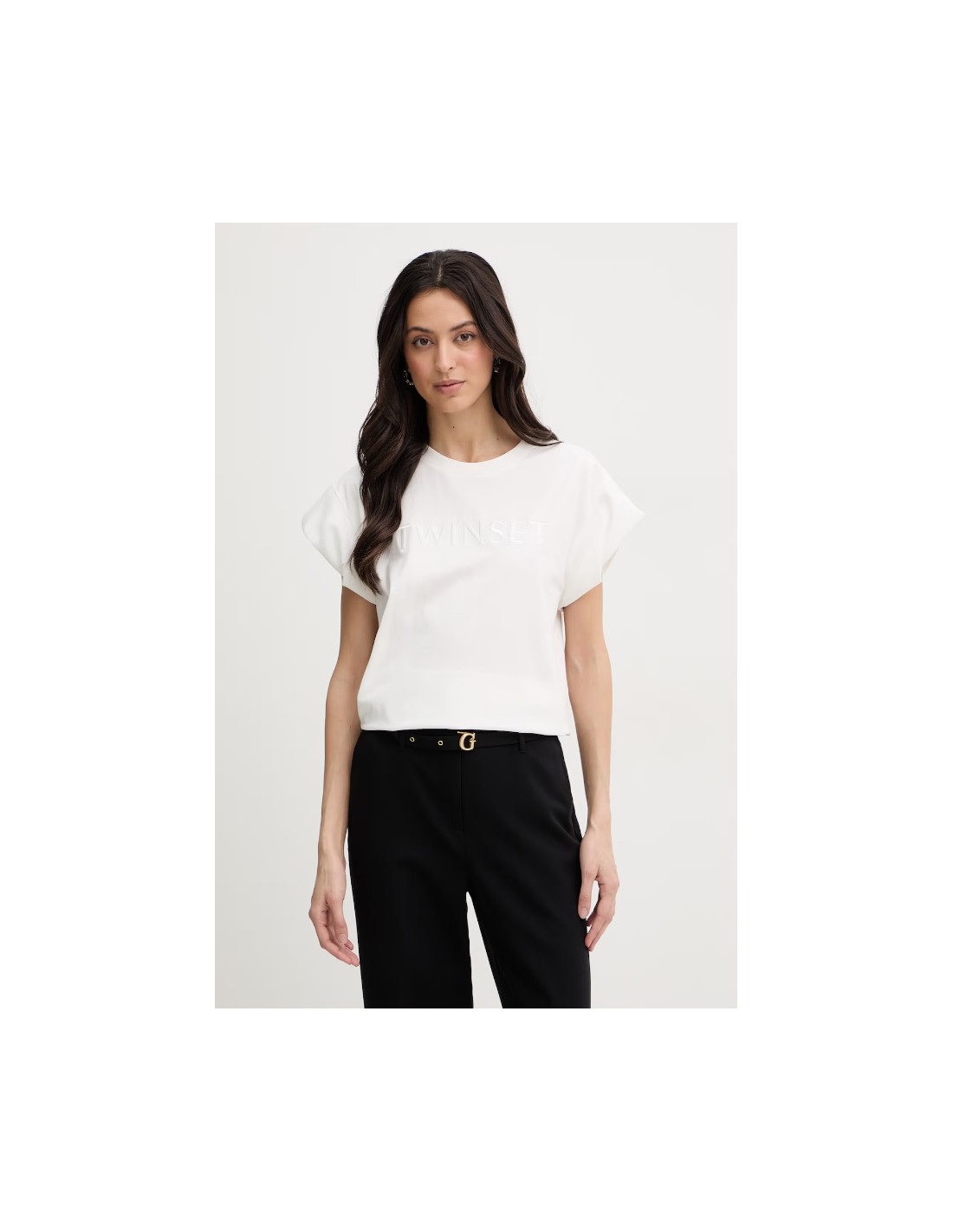 La T-shirt Twinset bianco unisce eleganza e comfort per un look contemporaneo. Realizzato in cotone, presenta girocollo maniche corte e logo ricamato sul davanti. Perfetto per outfit casual chic o più raffinati. Perfetto per distinguersi con eleganza.