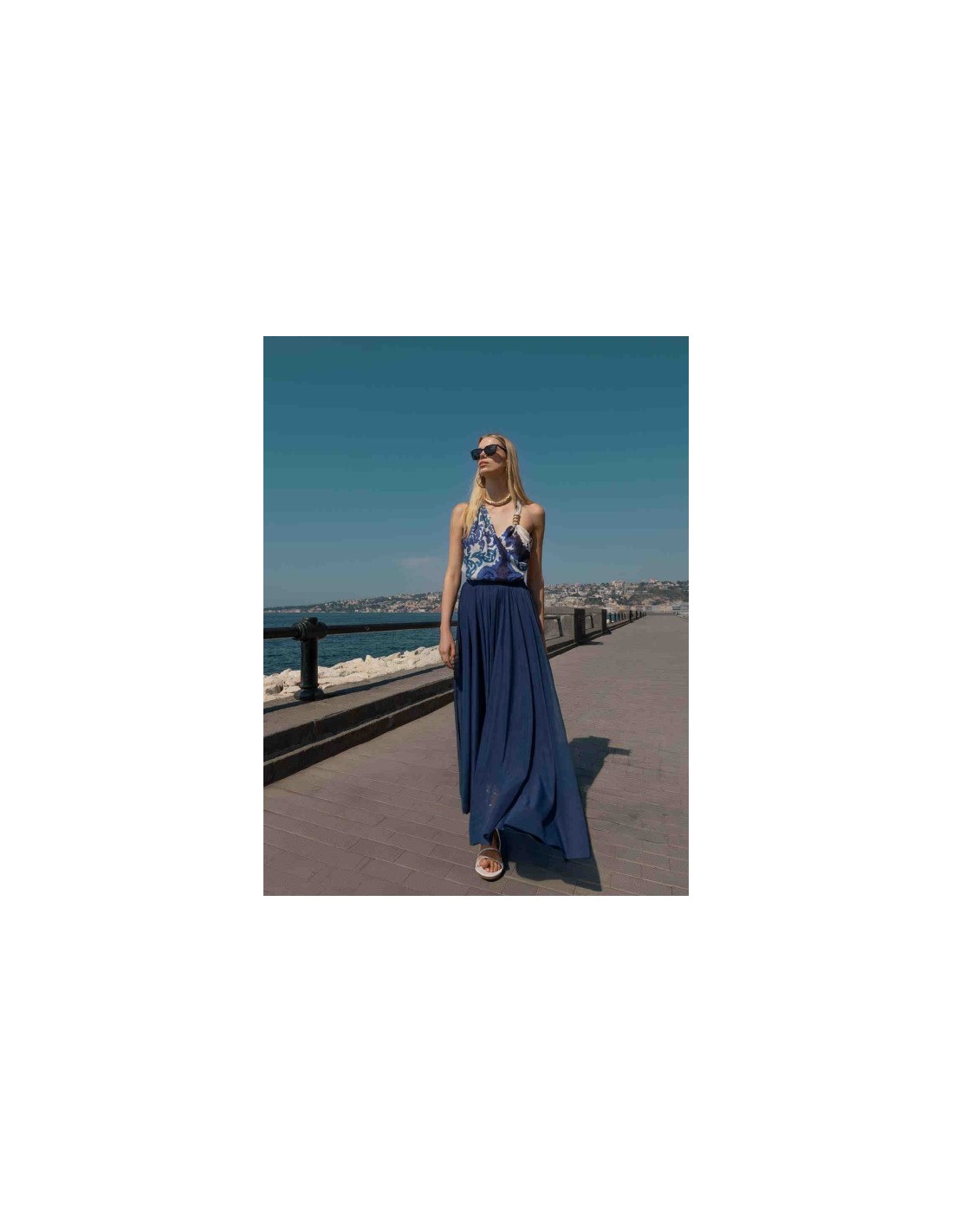 Il Pantalone Hanita blu unisce eleganza e comfort per un look contemporaneo. Realizzato in poliestere, presenta gamba larga vita alta elastico sul retro e chiusura con zip laterale. Pensato per offrire comfort e qualità nei dettagli. Scoprilo subito e rinnova il tuo look.